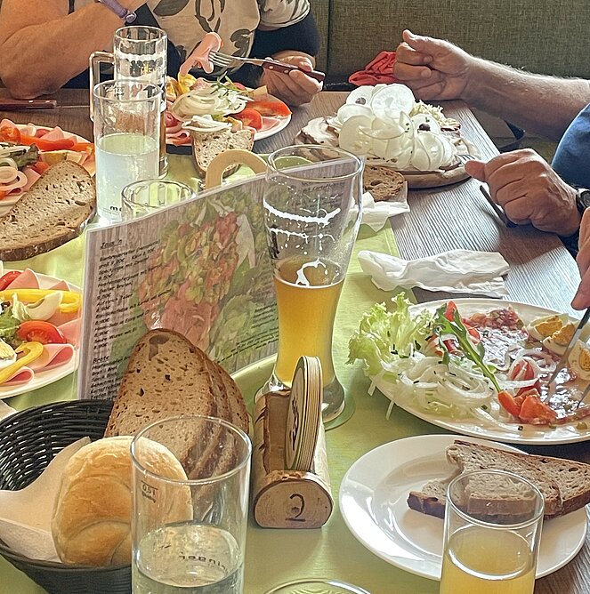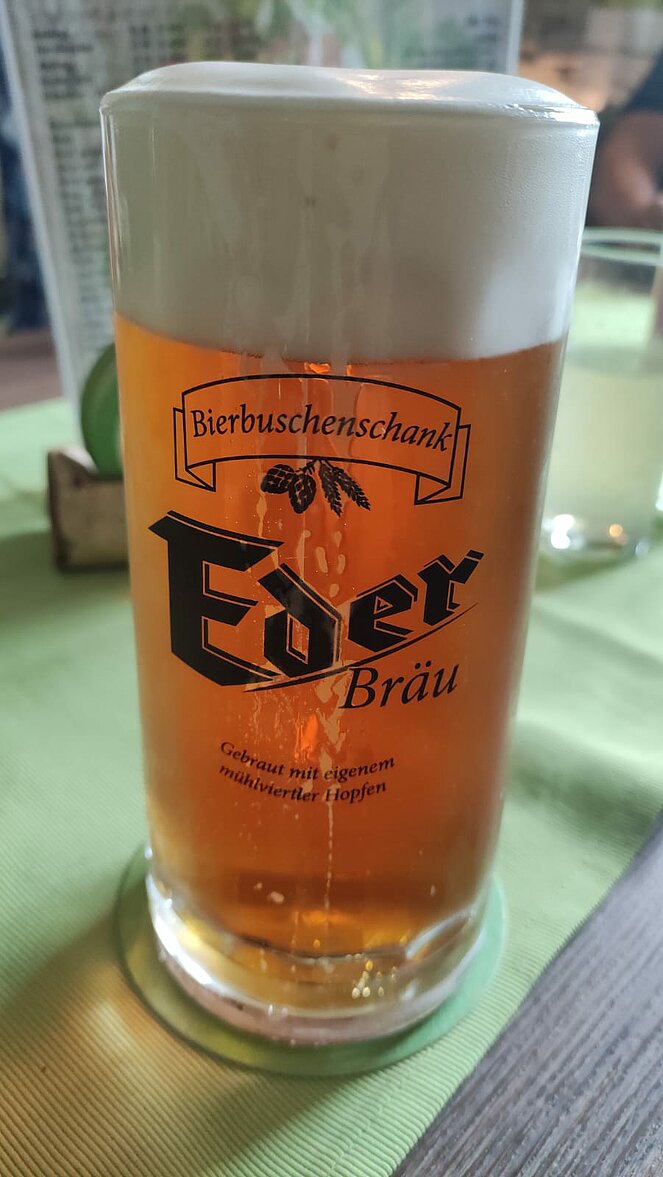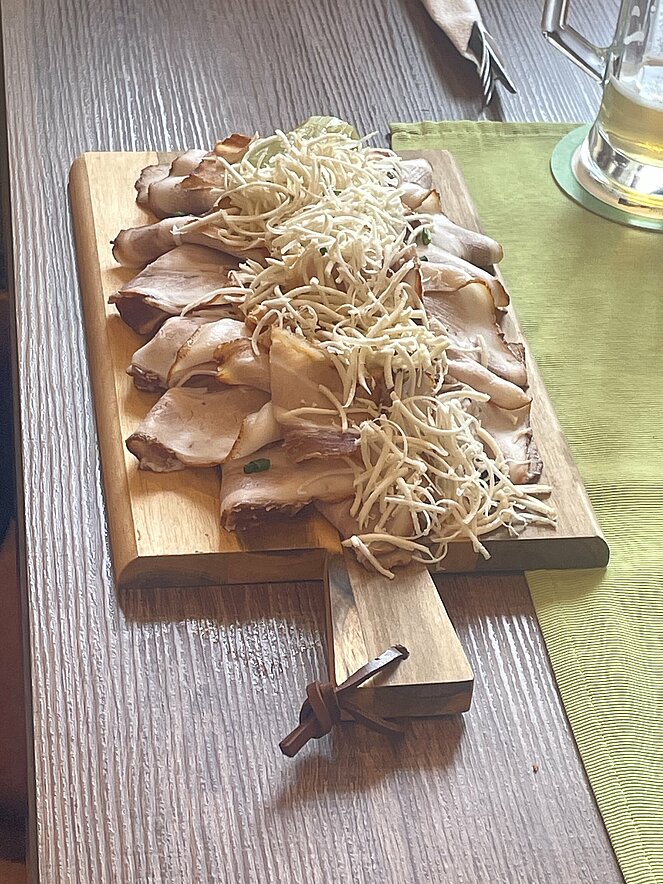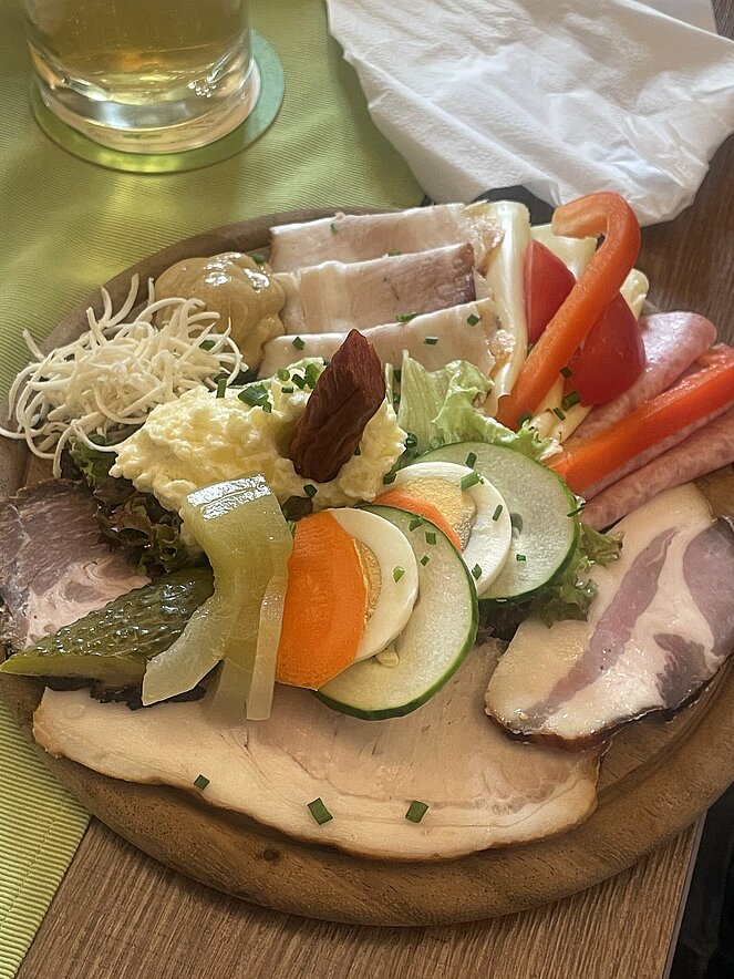 Zu den eigenen gebrauten Bieren zählen: Eder Bräu Golding, Eder Bräu Hersbrucker und Eder Bräu Malling und zusätzlich gibt es noch saisonale Sorten wie das Fastenbier und das Bockbier. Auch die im Anschluss genossene Jause war ganz ausgezeichnet.