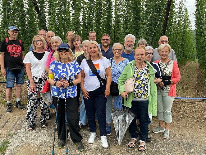 Das größte Hopfenanbaugebiet Österreichs liegt im Mühlviertel und daher führt uns unsere Themenwanderung in den Hopfengarten Eder in Pregarten. Nach der Wanderung entlang der Hopfengärten ging es in die „Bierbuschenschank Eder“. Frau Ehrensperger stellte den Familienbetrieb vor und es gab einen informativen Film über den Hopfenanbau, Hopfengewinnung und die Weiterverarbeitung. Frau Ehrensperger ist Bierbrauerin und ein Teil des Hopfens wird für das eigene Bier verwendet und der Rest wird an andere Brauereien über die Hopfenbaugenossenschaft Neufelden verkauft.