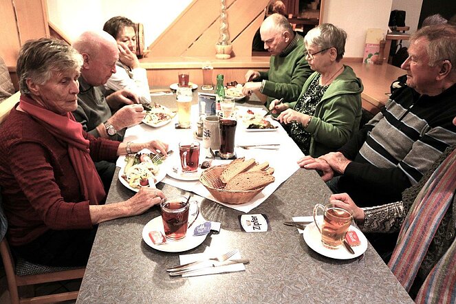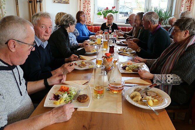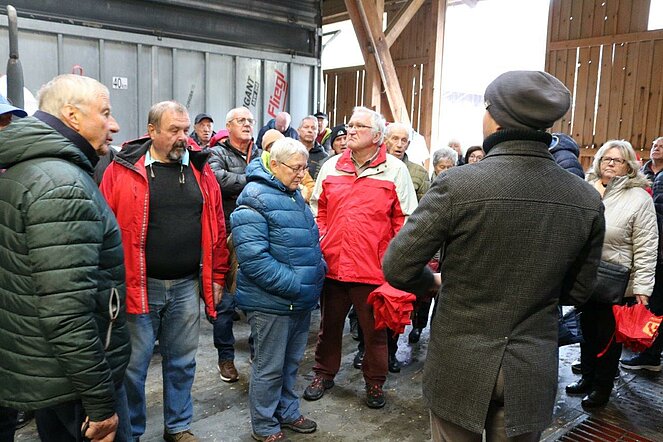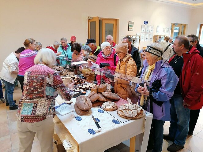 Obwohl sich nahezu 20 Personen wegen Krankheit (oder Schlechtwetter) abgemeldet hatten, startete die Gratisfahrt mit 56 Mitreisenden und unbekanntem Ziel plangemäß. Schon bald hatten einige das erste Ziel im Visier: die Bio-Hofbäckerei Mauracher in Sarleinsbach. Nach einer informativen Führung samt mächtigem Rinderstall hatten wir nur wenige Minuten Fahrzeit zum Mittagessen beim örtliche „Kräutermandl“.