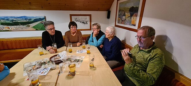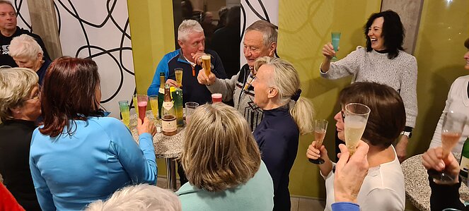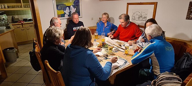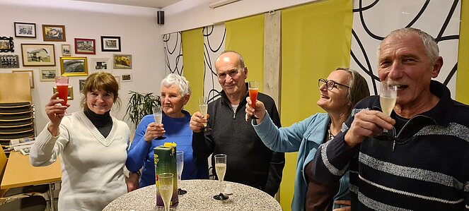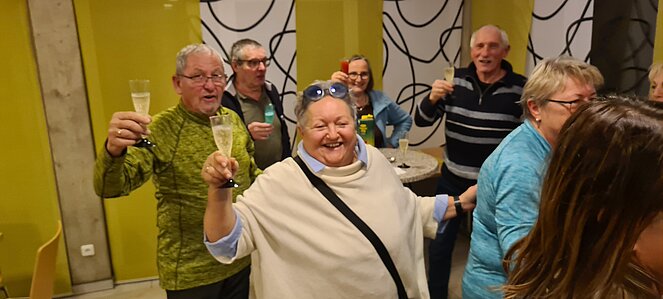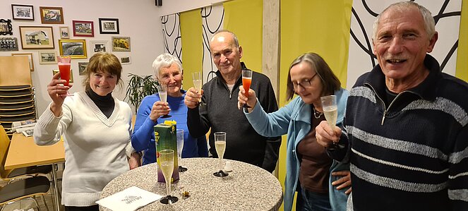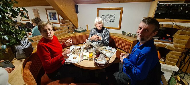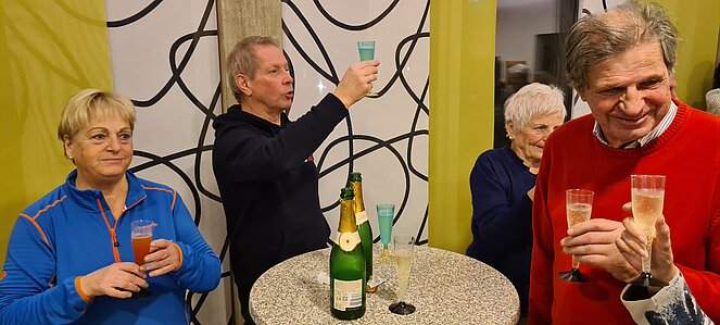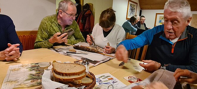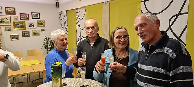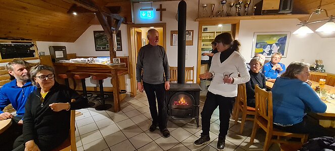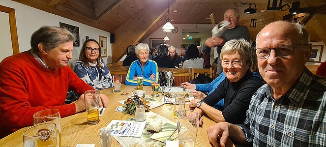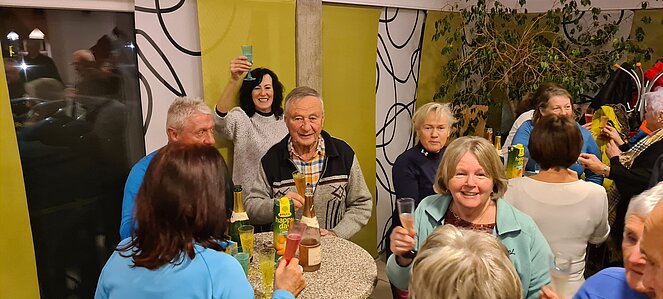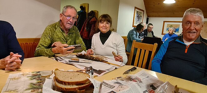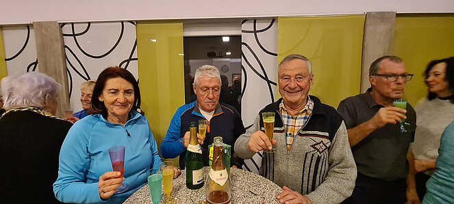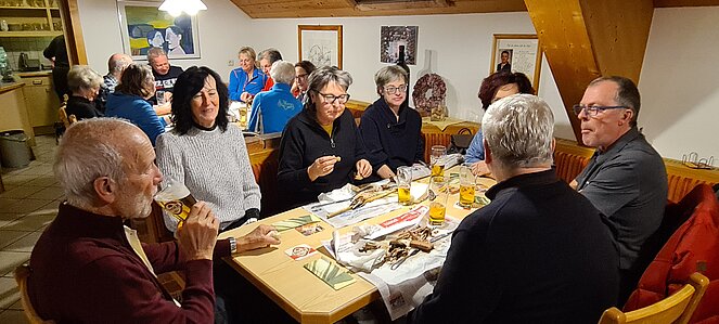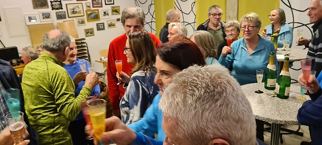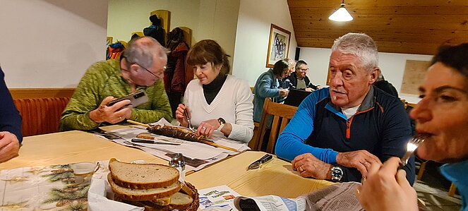 Bei einer großen und etwas kleineren Runde konnte es sich jeder aussuchen, wo er mitgehen möchte. Natürlich gab es auch auf halber Strecke ein Schnapserl zur Stärkung. Zurück beim Feuerwehrzeughaus Neudorf wurden wir im Vereinslokal der F.F. Neudorf mit Steckerlfischen und Getränken versorgt und es wurde ein lustiger Abend. Zum Abschluss des heurigen Wanderjahres konnten wir noch mit einem Glas Sekt auf das schöne Wanderjahr anstoßen.