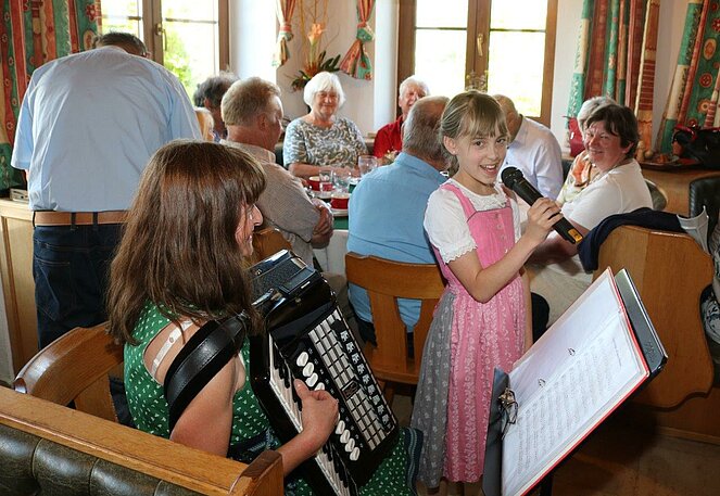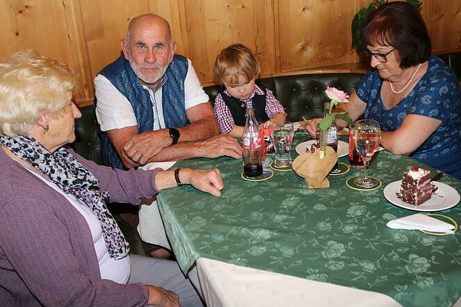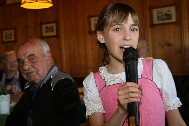 Ihnen wurde Kaffee und Mehlspeise bzw. ein Freigetränk serviert. Im folgenden Festprogramm wurden passende Lieder und Gedichte vorgetragen. Interpreten waren die elfjährige Leonie sowie Vroni Wokatsch und Gerhard Öller.