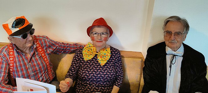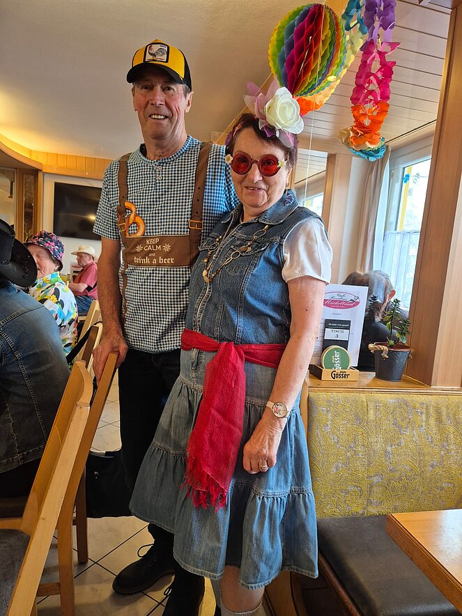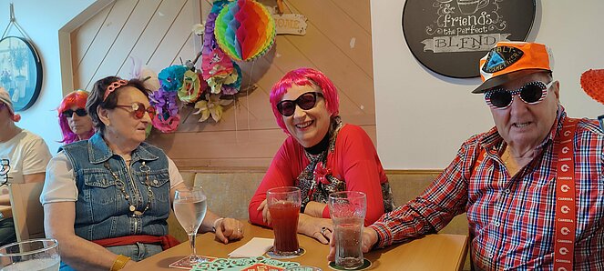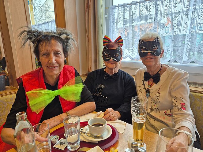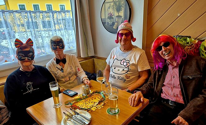 Trotz winterlicher Straßenverhältnisse folgten 30 bunt kostümierte Mitglieder des Pensionistenverbandes der Einladung zum Faschingsausklang bei Krapfen und Musik im Cafe Residenz Michelland.