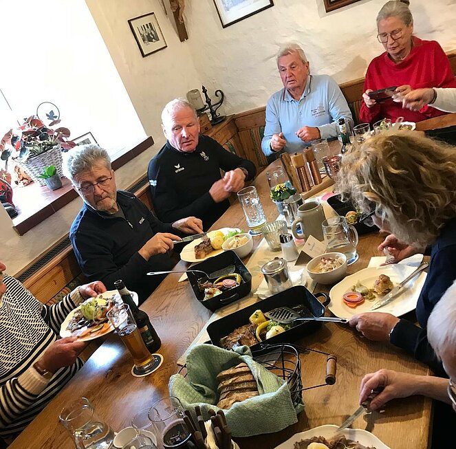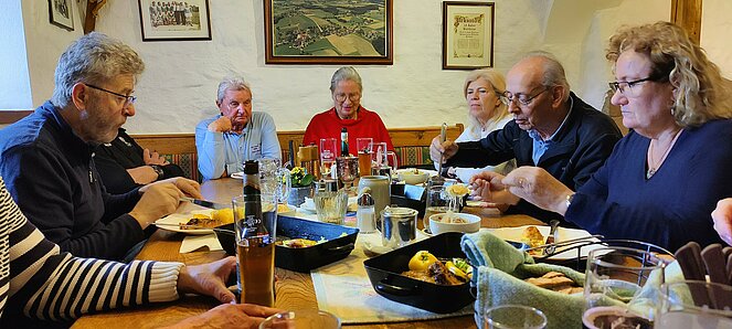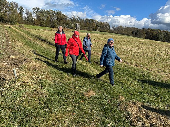 Das Wetter hielt und gegen den Herbstwind waren wir gerüstet. Nach dem Anstieg zum Dorf Ruhstetten wurden wir mit einem Weitblick nach Wartberg/Aist, Neumarkt, usw. belohnt. Die Runde ging beim großen Pferdehof vorbei zur Einkehr beim Deisingerhof. Bei guter Stimmung und mit einer ausgezeichnet schmeckenden Jause beendeten wir nach 5,5 km die Halbtagswanderung.