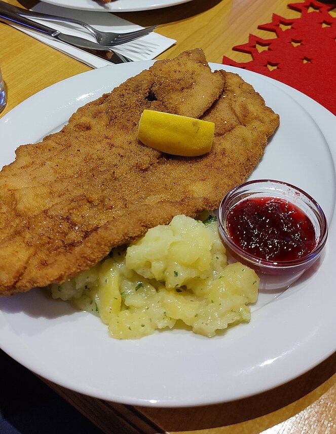 Mit Schnitzerl und manch gutem Glaserl verging der Nachmittag bei guter Unterhaltung wie im Flug.