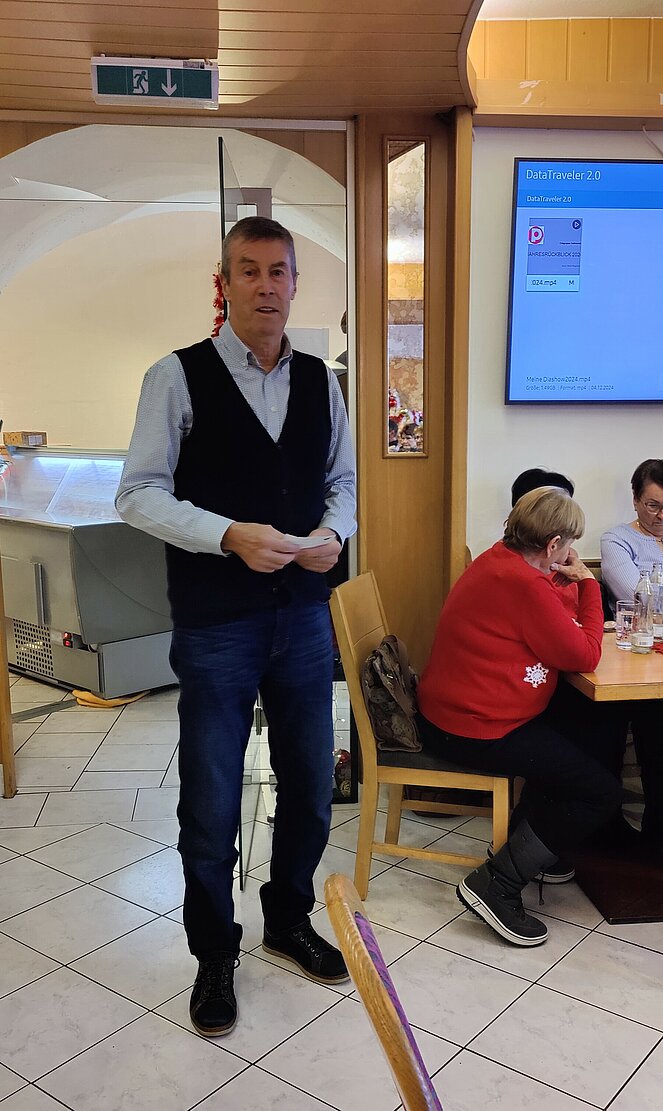 Heitere Weihnachtsgeschichten aus dem Buch “Auch Engel lachen gerne” wurden von Renate Eibensteiner und Traudi Neubauer vorgetragen. Es folgte dann ein Rückblick auf die Aktivitäten des letzten Jahres in Form einer Diashow mit Musikuntermalung, erstellt von Berta Wögerbauer.