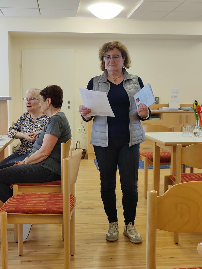 Nach Kaffee mit Apfel-, Topfen- und Schokoschnitten begrüßte Anneliese Nimmervoll die Gäste. Anneliese ist im Seelsorgeteam der Pfarrgemeinde zuständig für Caritas und Soziales.