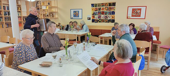 Hans Kleinhappl spielte mit der Ziehharmonika und bei manchen Liedern wurde auch fleißig mitgesungen. Renate las ein Gedicht vor, welches ihr von einer Anwesenden zugesteckt wurde, die dieses selbst gedichtet hatte. Es handelte von dem umfangreichen Alltag einer Bäuerin. Bravo!