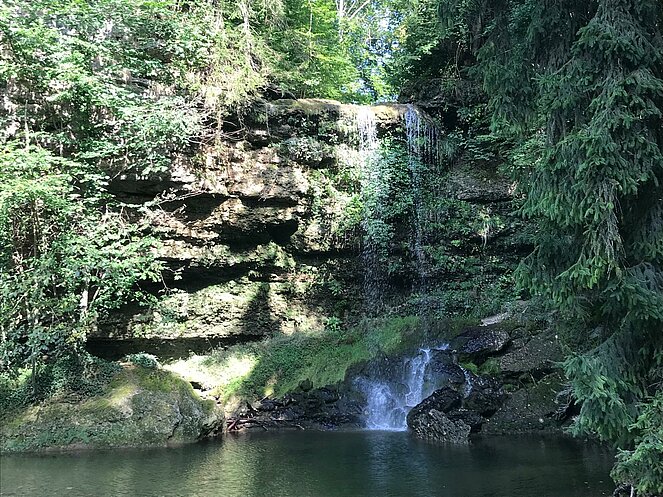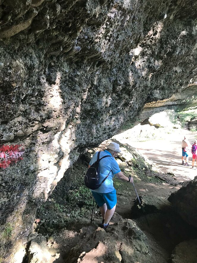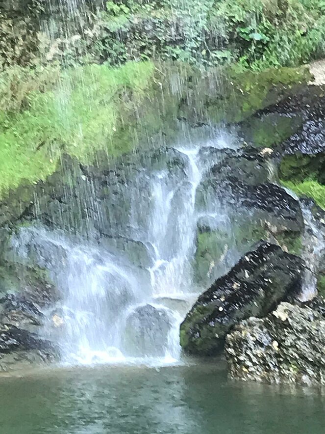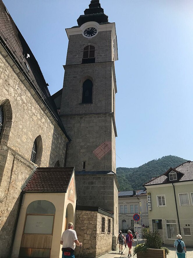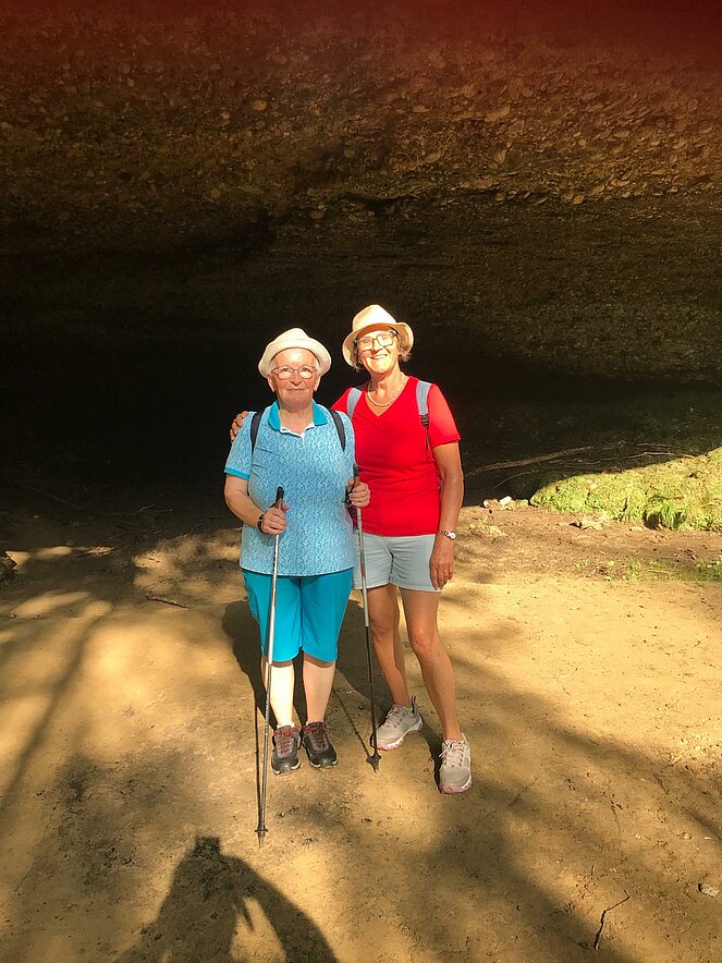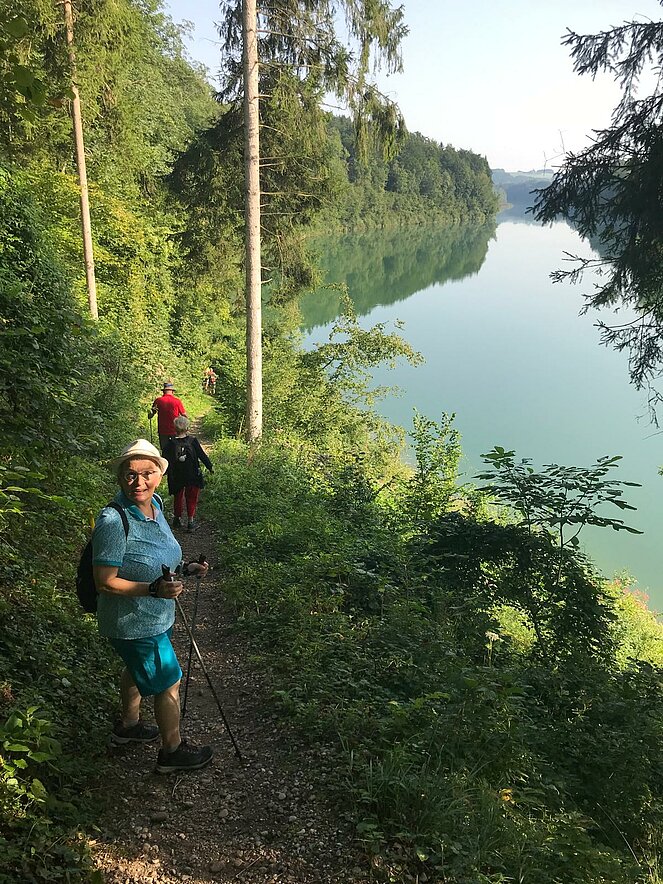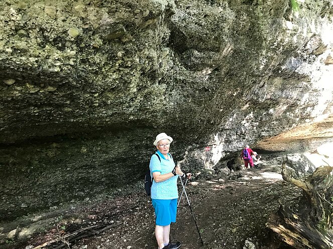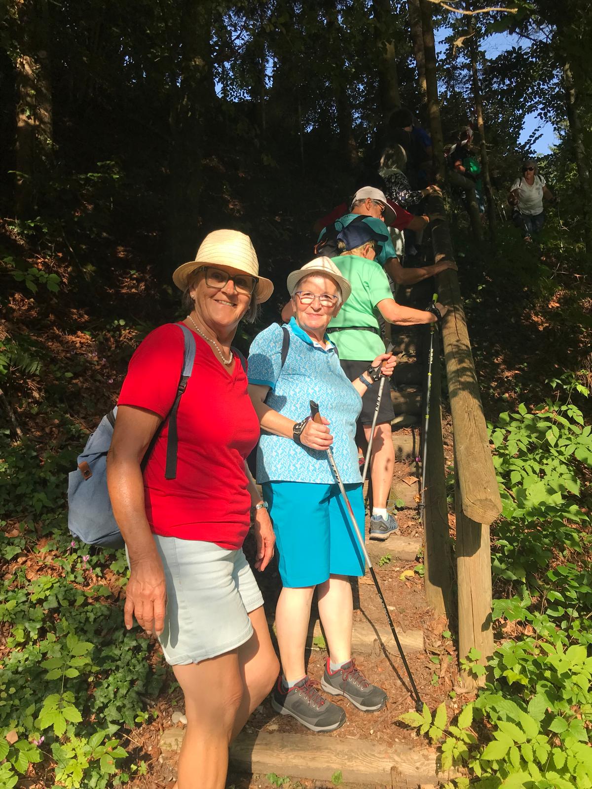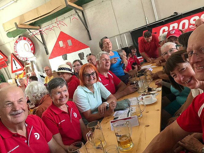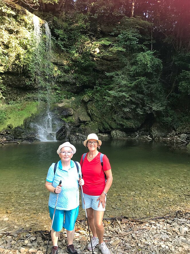 Vom Start beim Feuerwehrhaus ging es über die Ennsbrücke zum Enns-Aktivweg. Der wunderschöne waldreiche, aber steinige Steig führte bergauf und bergab entlang der samaragdgrünen Enns. Dann das Highlight: der malerische Wasserfall im Naturdenkmal Fallerbucht. Das ist ein wunderschöner natürlicher Platz zum Staunen. Durch die Schilflandschaft ging es zur Streckenhälfte, wo die Labestation zur Einkehr einlud. Der sonnenreiche Rückweg führte durch Felder und Wiesen an Bauernhöfen vorbei über Dürnbach und Ebenboden zum Ausgangspunkt. Dort war bereits ein Tisch zum Mittagessen für den Bezirk UU reserviert.