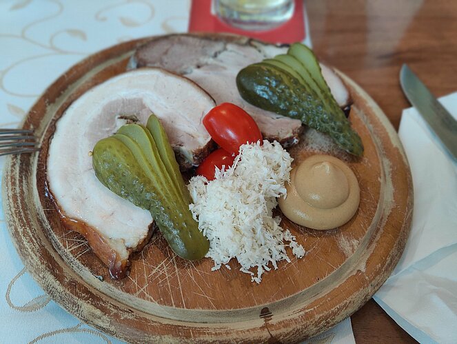 Zum Mittagessen brachte uns der Bummelzug zum nahegelegenen Restaurant „Zavis z Falkenstejna“.