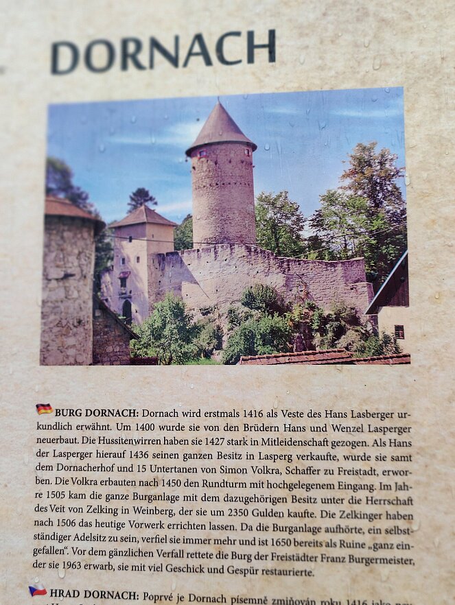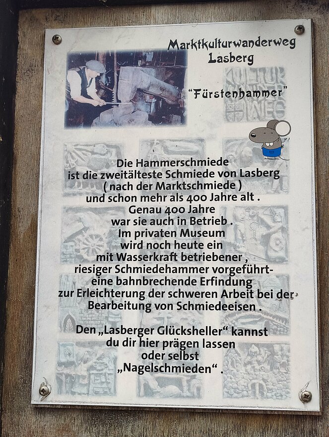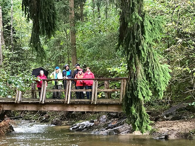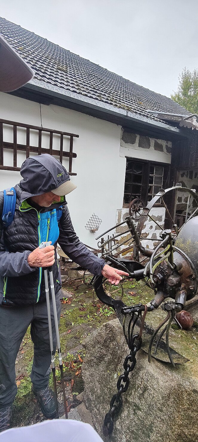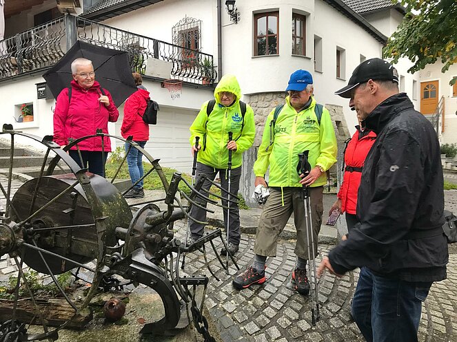 Starker Regen bei unserer Ankunft in Lasberg vermieste uns den sofortigen Start unserer Wanderung. Nach einer kurzen Einkehr im Gasthaus “Zur Haltestelle” marschierten wir der Feistritz entlang und hoch zur Burgruine Dornach. Wir trotzten dem wiederkehrenden Regen und gingen weiter zum Freilichtmuseum Fürstenhammer, wo uns Walter die Handhabung von alten Pflügen, Erdäpfelroder, die Esse als wichtigste Einrichtung einer Schmiede, usw. erklärte. Welch ein schöner Platz! Weiter ging’s über die Brücke ins Feistritztal und zurück zum Ausgangspunkt. Einkehr und Stärkung folgte wieder im Wirtshaus Haltestelle. Es war eine kleine gemütliche Rundwanderung.