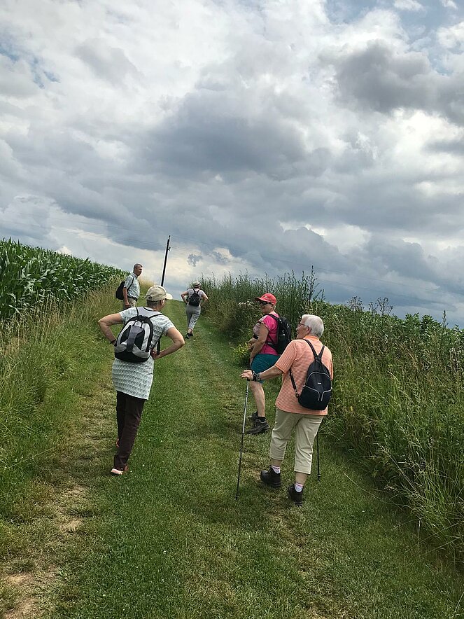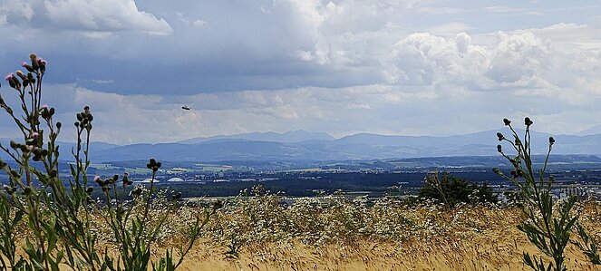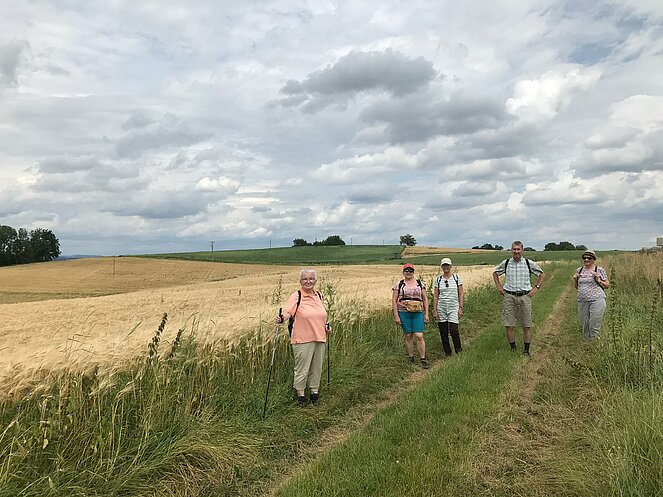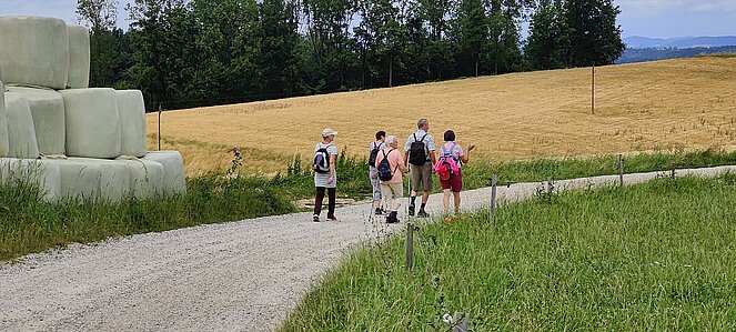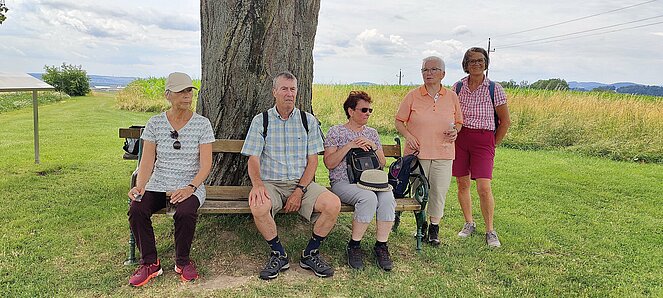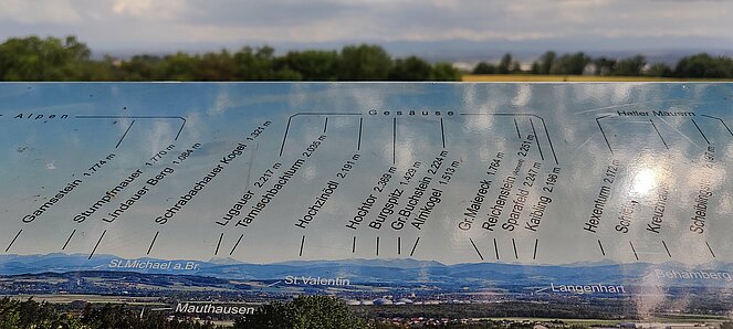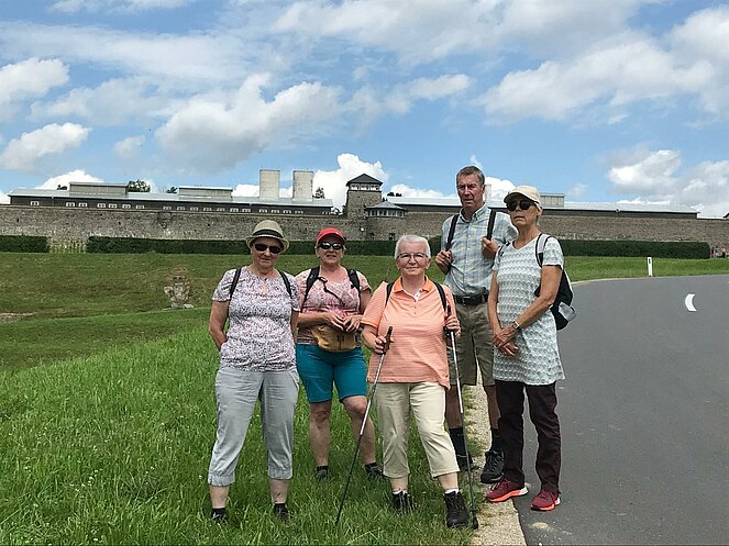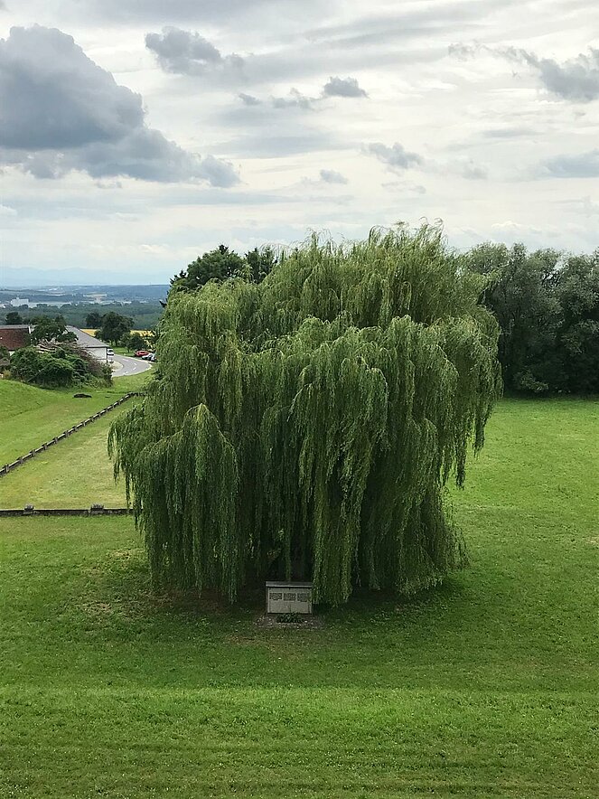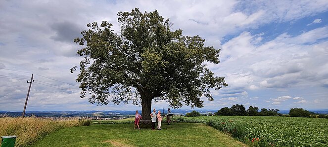Vom Parkplatz der Moststube Frellerhof bei der KZ-Gedenkstätte Mauthausen aus wanderten wir vorbei an Wiesen, Getreidefeldern und einem Hang voller Kirschbäume bis zur Marbacher Linde. Von dieser Anhöhe sieht man über die Donau nach Enns, St. Valentin, Strengberg und bis ins Gebirge. Ganz nahe liegt das Schloss Marbach. Ebenso bietet sich ein toller Ausblick auf die Mühlviertler Orte Ried i. d. Riedmark, Wartberg ob d. Aist und Allerheiligen an.