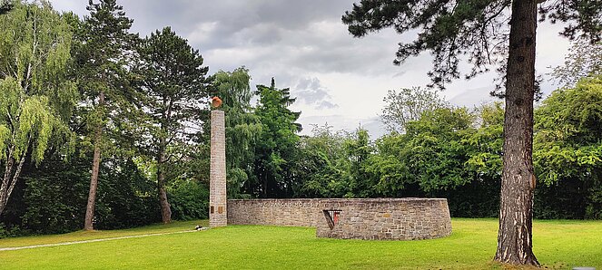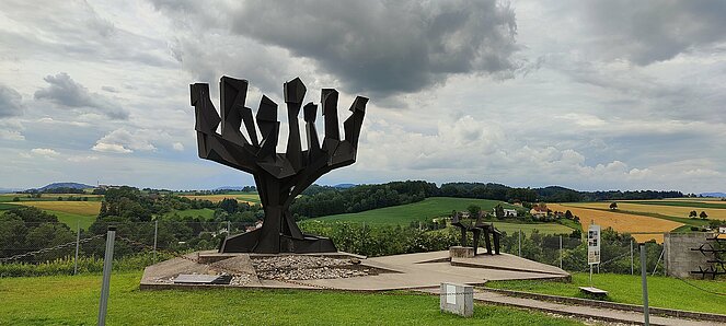 Wir gingen hinter dem KZ beim Aschenhang und am Wachtturm vorbei und besichtigten die verschiedenen Mahnmale auf dem riesigen Gelände außerhalb der KZ-Anlage.