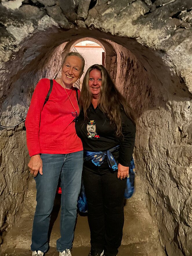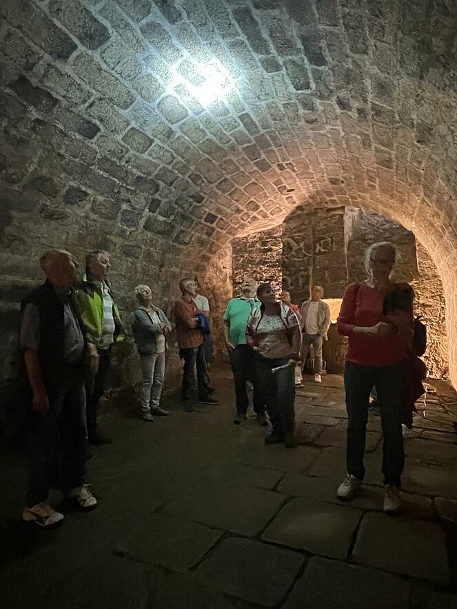 Die andere Gruppe begab sich in die „Freistädter Unterwelt“. Hier konnten wir verborgene Keller, Räume mit riesigen Gewölben, geheimnisvolle Gänge und rätselhafte Zeichen bestaunen. Ein mystisches Führungserlebnis.