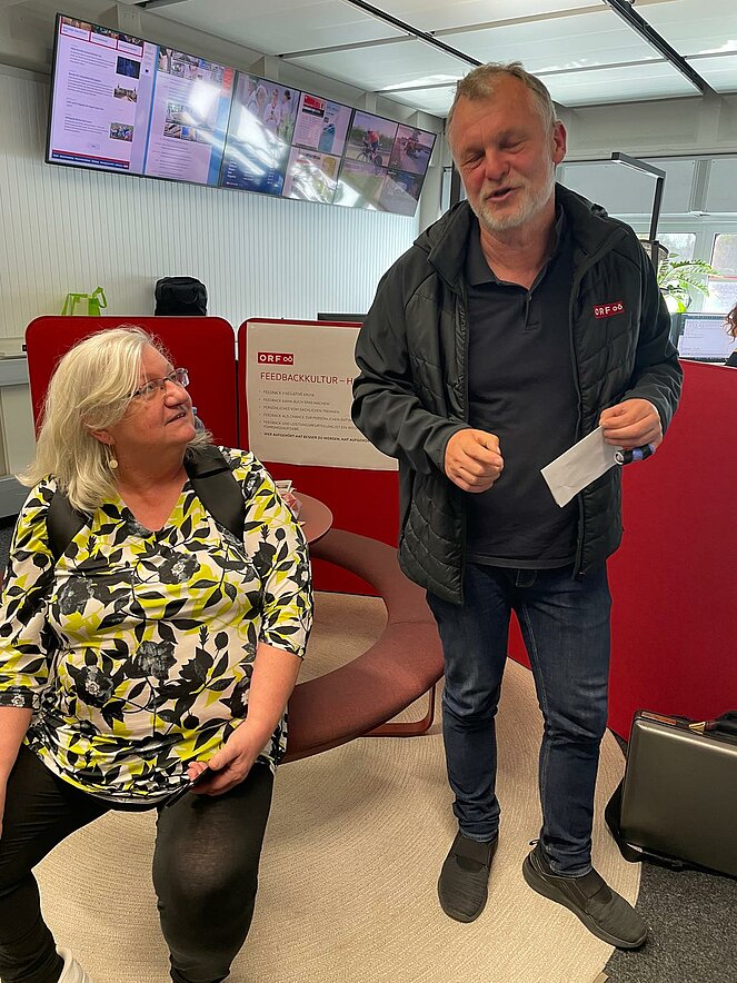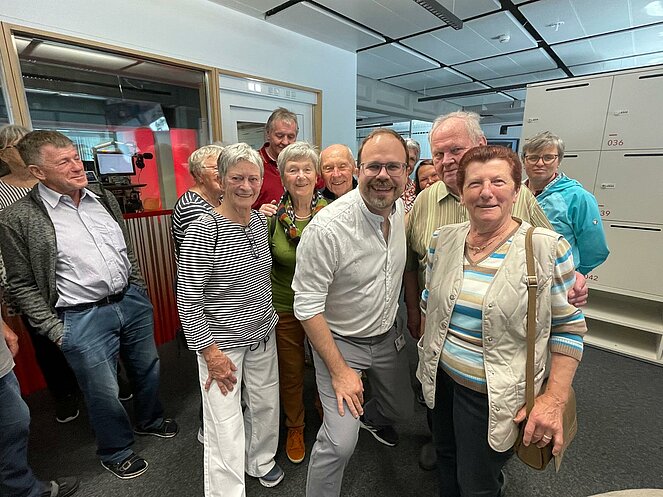 30 unserer Mitglieder nahmen an der sehr informativen Führung teil. Während wir durch die Räumlichkeiten geführt wurden, trafen wir einige interessante Mitarbeiter des ORF. So konnten wir uns mit Redakteur und Moderator Stephan Schnabl, bekannt aus „Radio O.Ö. Journal“ und „Oberösterreich heute“, blendend unterhalten. Ein wahres Urgestein des ORF ist Wolfgang Lehner, der unteranderem „Guten Morgen O.Ö.“ moderiert. Auch er nahm sich Zeit für ein nettes Gespräch mit uns. Weiters konnten wir Günther Madlberger beobachten, wie er gerade live „Radio O.Ö.“ auf Sendung brachte. Einmal hinter die Kulissen des ORF zu blicken, empfanden wir alle als interessant und sehenswert.