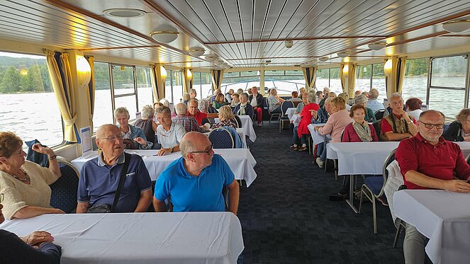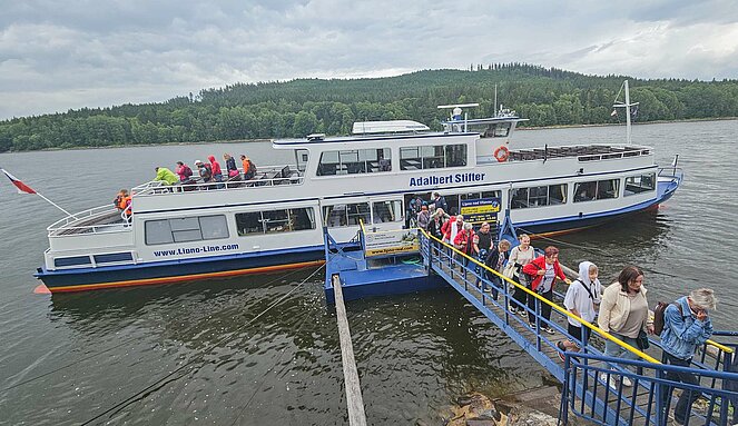 Weiter ging’s dann nach Lipno, wo uns ein echtes Highlight erwartete: eine zweistündige Schifffahrt auf dem Moldau-Stausee, mitten im Naturschutzgebiet des Böhmerwalds. Grün, wohin man blickte, das sanfte Schaukeln des Bootes, Wellen, Wind und ganz viel Natur. Es war Entspannung pur – und die Gespräche unter Deck hätten nicht schöner sein können.