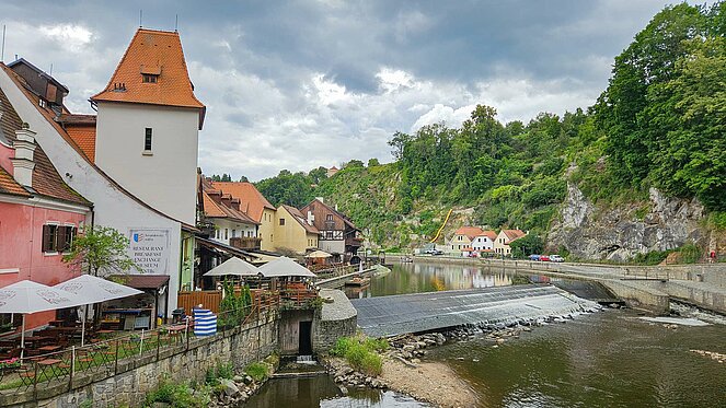 Zur Mittagszeit stärkten wir uns im Krumlovský Mlýn, dem Restaurant zur Mühle, direkt am Wasser gelegen. Gutes Essen in deftigen Portionen, nette Gespräche, und einfach dieses Gefühl von Sommerausflug – perfekt.