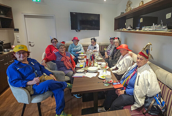 Auch heuer traf sich die Frauencafé-Gruppe des Pensionistenverbandes Ottensheim wieder im Café Casagrande, um in lustigen Verkleidungen einen vergnüglichen Vormittag zu verbringen. Ein Sketch von Otto Schenk, der per Video gezeigt wurde, sorgte gleich zu Beginn für herzhaftes Lachen. Die Fotobox-Nasenkarten brachten die Stimmung schließlich zum Überkochen – ein Tag voller Spaß und unvergesslicher Momente!