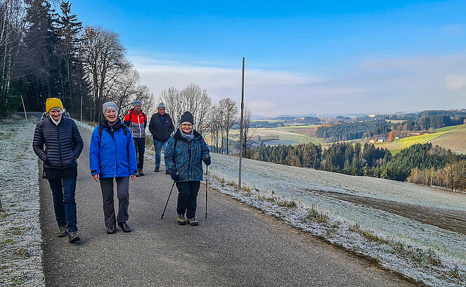 Um 9:00 Uhr trafen sich sieben kälteerprobte Wanderer beim Kreisverkehr Jörgerstraße. Mit den PKW ging es zunächst nach Neußerling, wo die 6 km lange Stamering–Buchenholz-Runde in Angriff genommen wurde.