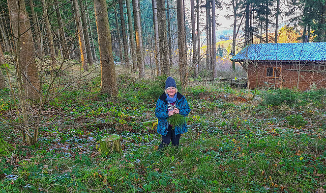Zuerst führte der Weg rund einen Kilometer entlang des Güterweges, ehe die Gruppe in den Wald abbog und bergauf zur Ortschaft Buchenholz wanderte. Nach einer kurzen Rast ging es bergab zurück nach Neußerling und anschließend weiter zum Burgstallerhof. Schon beim Eintreffen war der Duft der frisch gebratenen Ripperl zu spüren.