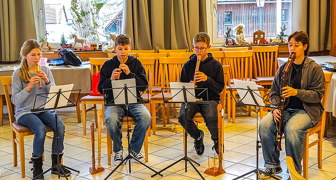 Die Feier wurde – wie schon in den vergangenen Jahren – von einem Schüler*innenensemble der Musikschule festlich umrahmt. Einige der Musikstücke luden auch zum Mitsingen ein.
