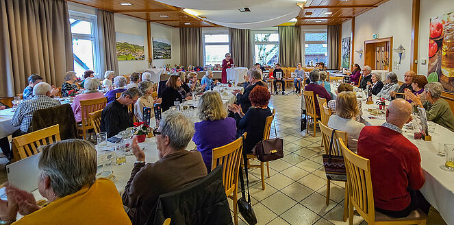Die Ortsgruppe Ottensheim feierte am 13.12. auch heuer wieder eine besonders stimmungsvolle Weihnachtsfeier im bis auf den letzten Platz gefüllten Saal des GH Bergmayr. Nach einem gemeinsamen Mittagessen wurde die Feier von Obfrau Gabi Plakolm eröffnet. Anschließend richtete Bezirksvorsitzende Elisabeth Neulinger ihre Worte an die Anwesenden, begrüßte die Mitglieder und berichtete über Aktuelles aus dem Bezirk sowie politische Neuigkeiten. Zudem stellte sie die neue, halbjährlich erscheinende Bezirkszeitung „Meine Generation“ vor, von der die erste Ausgabe bereits auf den Tischen auflag und präsentierte die Mitgliederwerbekampagne „BOOMER willkommen“.