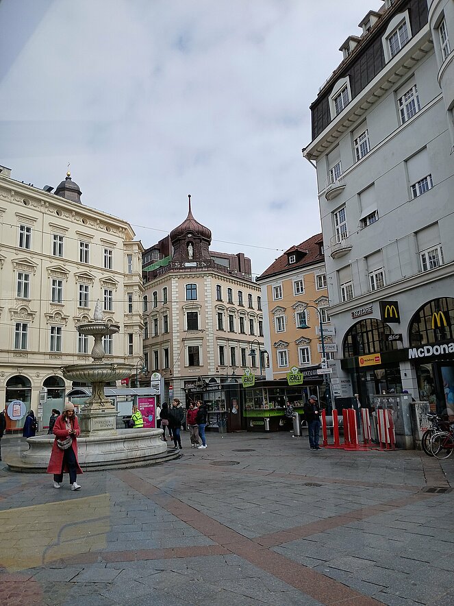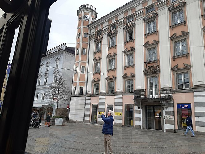 39 ausflugsbegeisterte und stadtinteressierte Mitglieder der OG Puchenau trafen sich auf dem Linzer Hauptplatz zu einer besonderen Stadtbesichtigung.