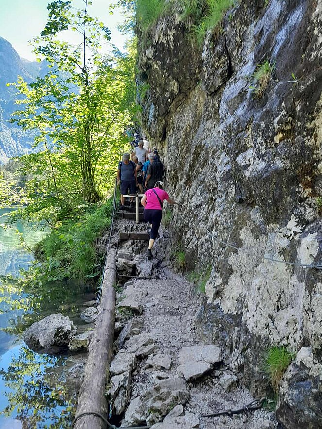 Schönstes Wetter begleitete uns zur Schifffahrt am Königssee bis Salet. Ein Teil der Gruppe wanderte zum Röthbach-Wasserfall, schmal angelegte Wege und steile Passage waren zu bewältigen. Die Gruppen teilten sich auf, und fuhren