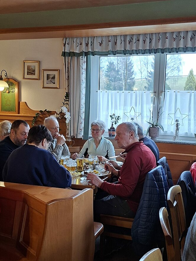 Nach der Wanderung wurden wir von unserer Wirtin mit ausgezeichnetem Essen und Getränken verwöhnt. Zum gemütlichen Abschluss kehrten wir noch beim Wirt ein, wo wir gemeinsam einige Lieder sangen und den Tag stimmungsvoll ausklingen ließen.