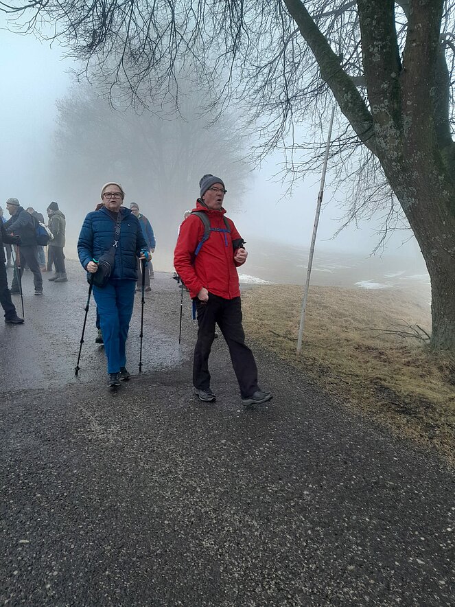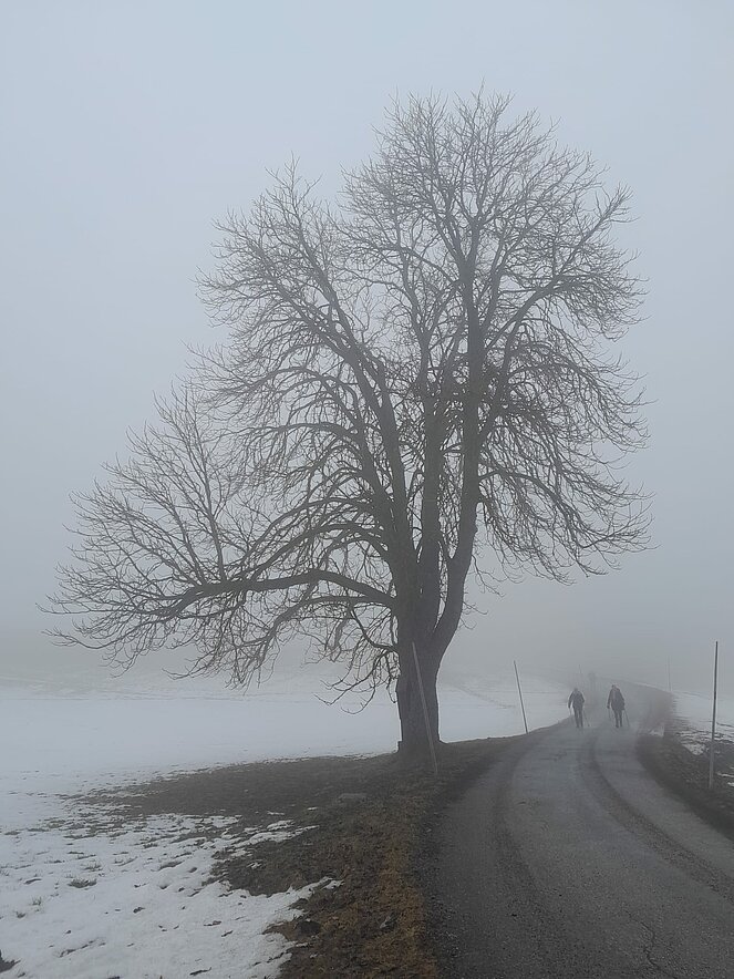 Bei nebeligem, beinahe mystischem Wetter und stellenweise sogar noch etwas Eis führte uns der Weg gut gelaunt durch die winterliche Landschaft.