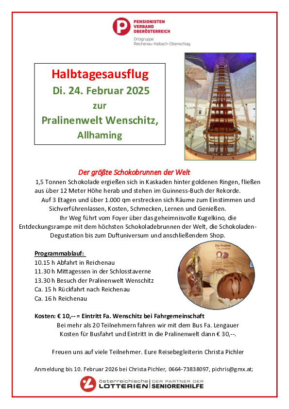 Halbtagesausflug: Schlosstaverne Weissenberg/Neuhofen und Confiserie Wenschitz/Allhaming