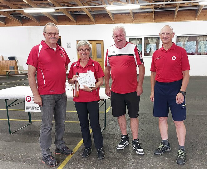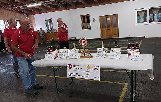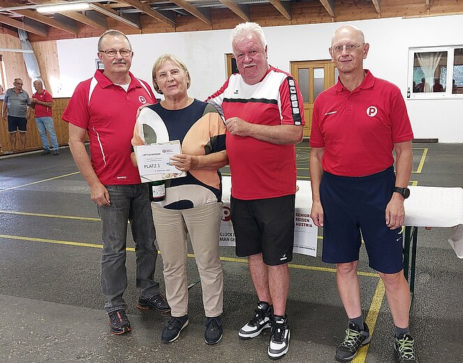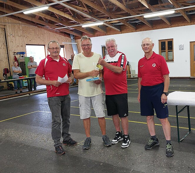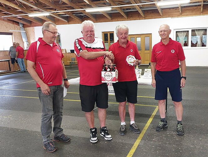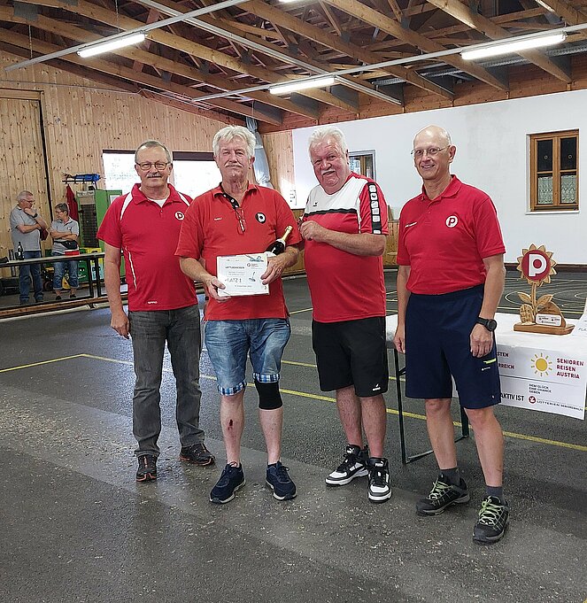 Die Siegerehrung wurde von Walter Treuer zusammen mit Hans Hammer und dem Bez.Sportref. Kurt Keuschler vorgenommen. Keuschler richtete einige Grußworte an die Teilnehmer. Die Veranstaltung gefällt ihm, er freut sich über diese OG-übergreifende sportliche Aktivität und hat das Lattlschießen selber zum ersten Mal probiert.