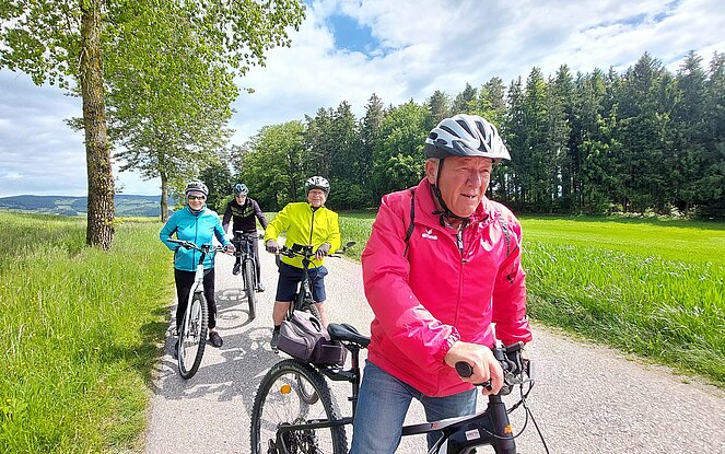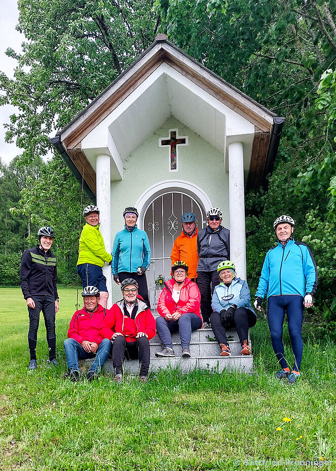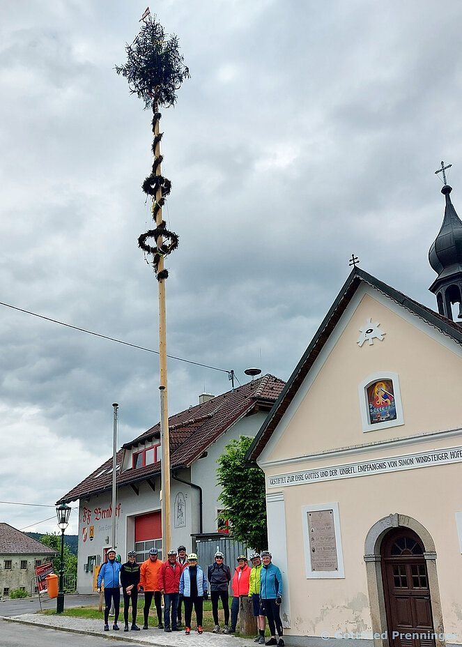 Wettermäßig stellte sich der 19. Mai zu Mittag eher wie ein Apriltag dar, aber immer mehr brachte der Nachmittag Sonnenschein und angenehme Temperaturen. Gestartet haben wir mit 10 E-Bikern in Reichenau, über Zwettl fuhren wir weiter nach Untergeng. Dann begann über Serpentinen die Auffahrt nach Berndorf. Auf der Strecke nach Neußerling hatten wir einen schönen Ausblick auf Gramastetten und ins schöne Mühlviertler Land, sowie auf die Bergwelt im Voralpenland, auf den Traunstein, großen Priel.... Von Neußerling nahmen wir die Rückfahrt über Reindlsedt – Oberneukirchen – Zwettl und für den letzten Anstieg über Dreieck zurück nach Reichenau waren unsere Akkus noch gut gefüllt. Beim Loschka gab es den gemütlichen Abschluss mit Gulasch, Würstl in Saft, Bratlbrot und Wurstsalat. Insgesamt haben wir 48 Kilometer mit 850 hm zurückgelegt.