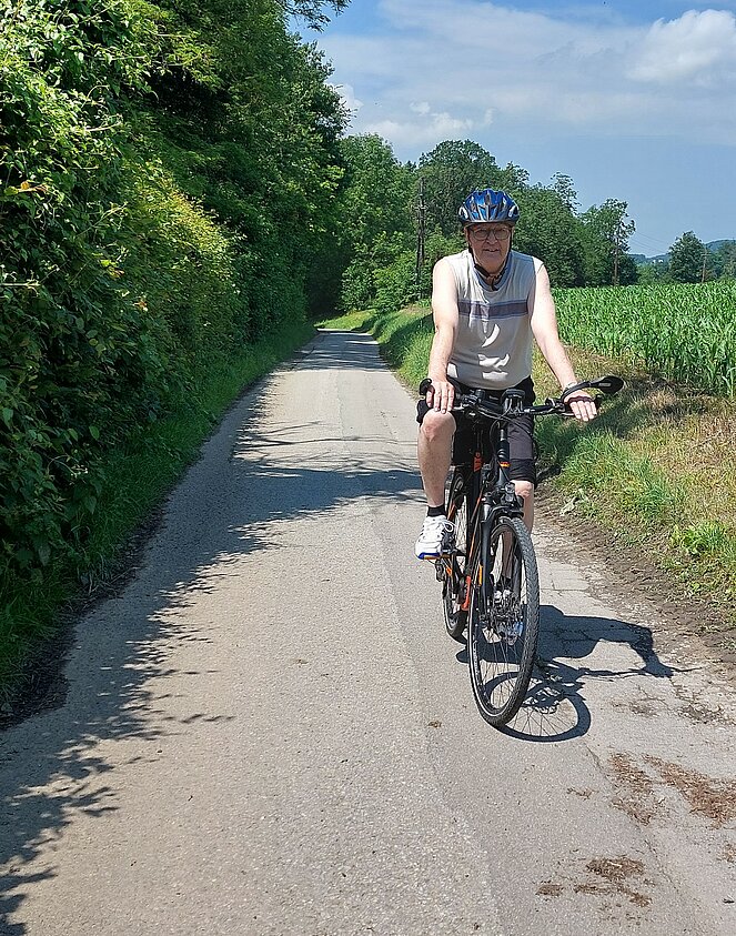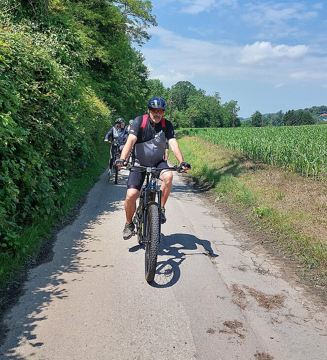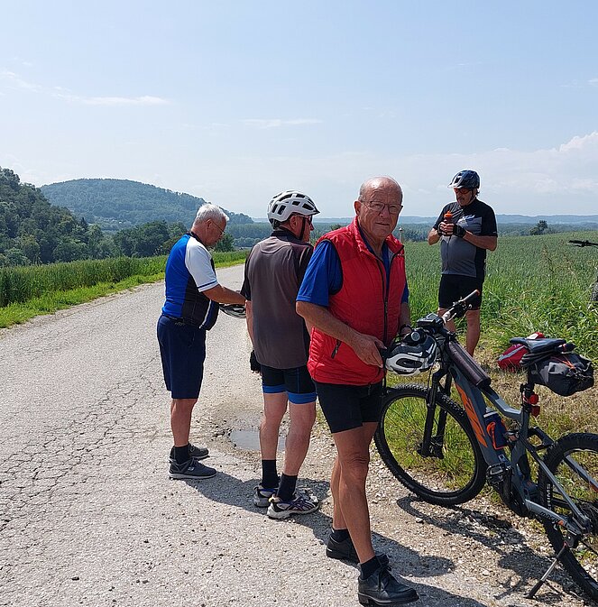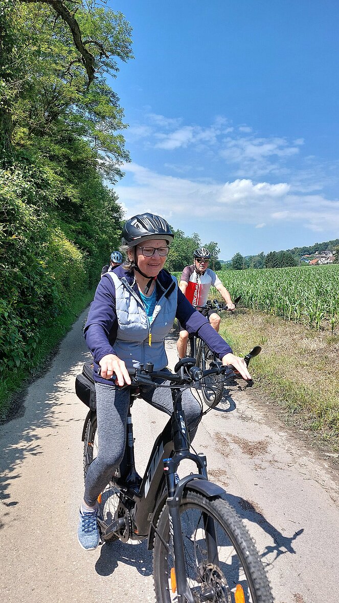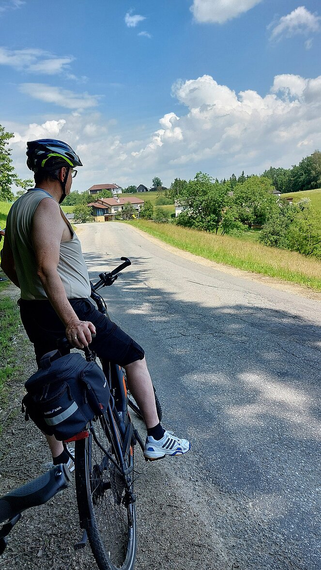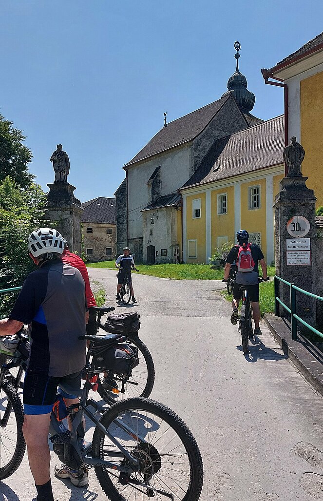Die für Montag, 3. Juni geplante Ausfahrt haben wir wetterbedingt auf Mittwoch verschoben und da herrschten angenehme Temperaturen zum E-Biken. Start war am Parkplatz des Freibades in Gallneukirchen, wo sich 10 Radfahrer einfanden. Sepp Pichler übernahm für diese Ausfahrt die Streckenplanung – danke dafür. Über Schweinbach – Mittertreffling fuhren wir nach Lachstatt, vorbei an der Bauakademie, weiter nach Holzwinden, Götzelsdorf nach Pulgarn. Dass es dort ein Kirchlein gibt, war vielen von uns nicht bekannt. Von der Gemeinde Steyregg brachte uns der Weg dann in die Gemeinde Luftenberg. Entlang des Sportplatzes, vorbei an Obstplantagen, über Gröbetsweg, Hohenstein, Haid ging es zurück nach Gallneukirchen. Die Landschaft in dieser Gegend ist sehr hügelreich, sodass wir 700 Höhenmeter bei 40 km Fahrstrecke zurückgelegt haben. Den gemeinsamen Abschluss gab es im Imbiss 2000, wo wir preisgünstig und gut zu Mittag gegessen haben.