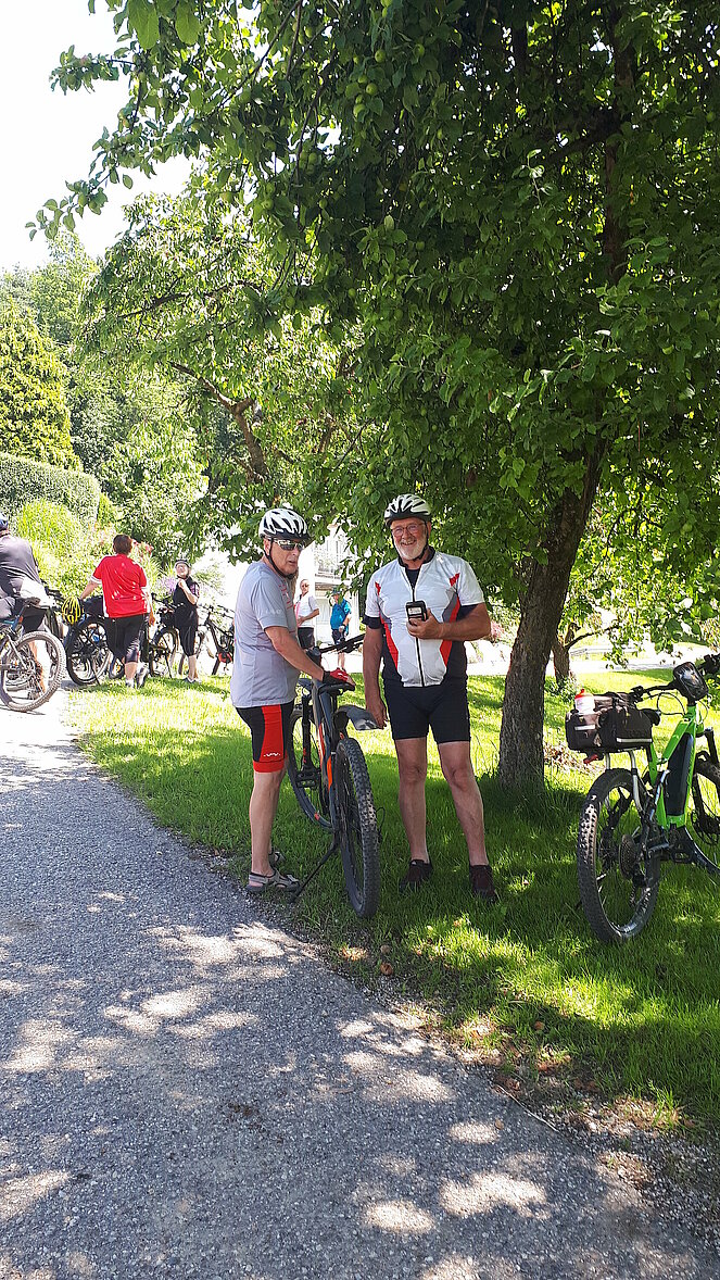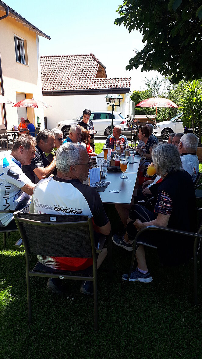 Bei feinem Wetter konnten wir heute wieder mal stressfrei ohne gewitterträchtige Wolken unsere vierte Radtour durchführen. Start war um 10h beim Gasthaus Raml in Altenberg. 13 ambitionierte E-Biker folgten heute Pirngruber Hans, der die Streckenführung übernahm. Zügig gings los Richtung Willersdorf, Edt, Preising, Veitsdorf. Bei klarer Sicht konnten wir streckenweise ein traumhaftes Panorama über Linz und hinein in die Berge genießen. Nächste Station war Gallneukirchen, Schweinbach, Engerwitzdorf, Zingissing, Kulm und Zieleinlauf nach 30km erfolgte wieder in Altenberg. Den gemütlichen Abschluss genossen wir dann im Gastgarten unterm Kastanienbaum beim GH Raml. Kulinarisch wurden wir hier mit einem köstlichen Schweins- und Kalbsbraten, sowie Geschnetzeltem verwöhnt.