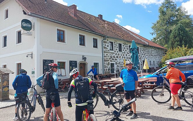 13 E-Biker starteten in Reichenau zur gemeinsamen Ausfahrt, die von Hans Tröbinger geplant und als Guide angeführt wurde. Lieber Hans – ein herzliches Dankeschön dafür!