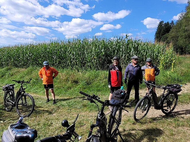 Die Rückfahrt nach Reichenau führte uns über Stiftung und Habruck. Insgesamt legten wir rund 43 abwechslungsreiche Kilometer mit 840 hm zurück – inklusive eines flotten Reifenwechsels unterwegs, der mit vereinten Kräften mit Bravour gemeistert wurde.