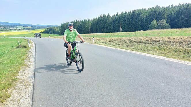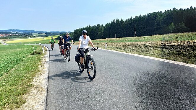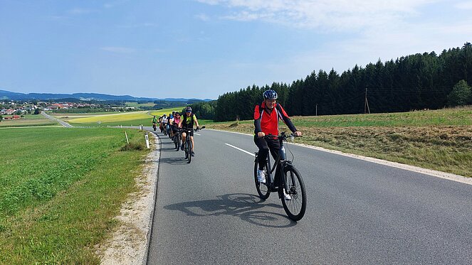 Mit 14 E-Bikern brausten wir um 10h los, von Reichenthal ausgehend zu einer Tour durch das schöne Mühlviertel.