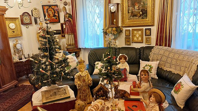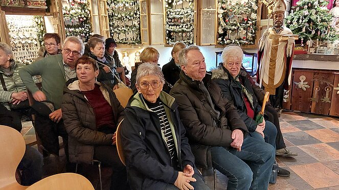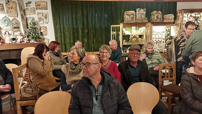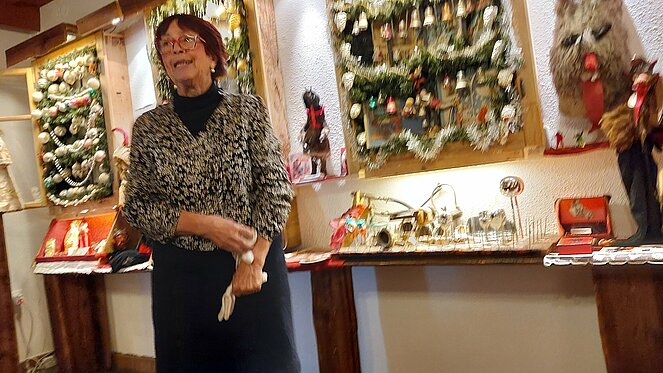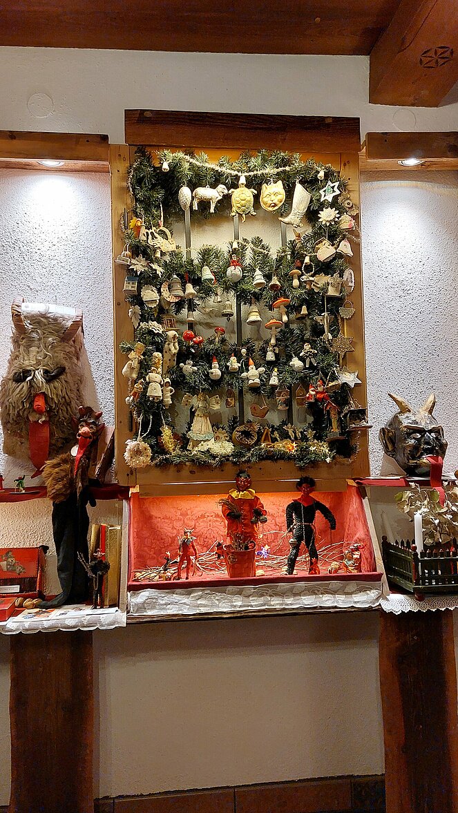 Begonnen haben wir unsere Führung mit Frau Windner mit dem Thema „Krampus und Nikolaus“. Das Weihnachtsmuseum beherbergt aktuell als Sonderausstellung eine Leihgabe der OÖ Landes- und Kultur-GmbH. Der KRAMPUS – ihn gibt es seit dem 16. – 19. Jhdt als Begleiter des Nikolaus. In der Überlieferung galt der 5. Dezember als Tag der Abrechnung für „dunkle Handlungen“. Der Krampus übernahm dafür die Rolle des teuflischen Mahners. Am 6. Dezember stand das Gute und die Wiedergutmachung im Vordergrund. Einig waren wir uns, dass die Ablöse des Krampus durch die Perchten, die aktuell voranschreitet, für unsere Region nicht passend ist. Brauchtumsmäßig sind die Perchten in Tirol und in der Stmk. beheimatet. Leider hat der Krampus durch gemachte Fehler in seinem Verhalten viel zu seinem Verschwinden selber beigetragen.