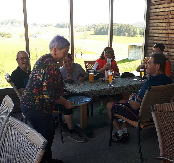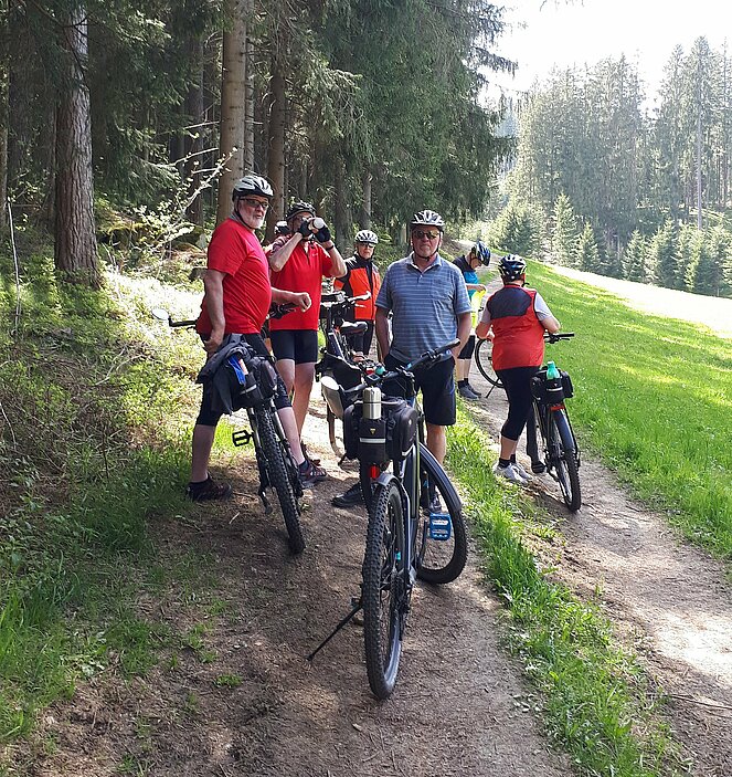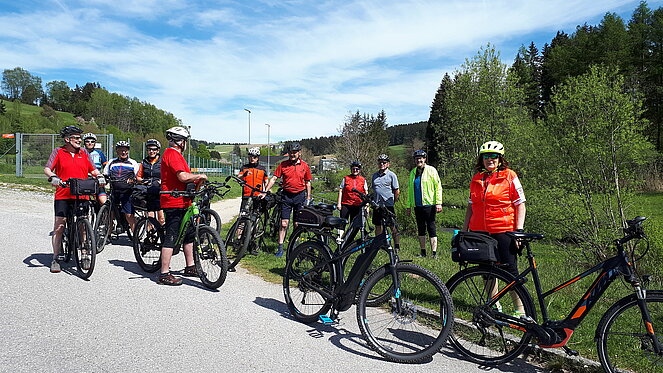 Am 29. April 2024 hatten wir endlich wieder feinstes Radlerwetter. 13:30h war Startschuss in Reichenau mit 12 E-Bikern. Los gings Richtung Glashütten, Zwettl, den Bienenweg entlang zum Golfplatz, wo wir eine kurze Rast einlegten. Weiter nach Waldschlag, durch den Brunnwald nach Bad Leonfelden, Oberstiftung, Liebenschlag. Nach 40km erreichten wir unsere obligate Labstelle, das Gasthaus Steinschild. In gemütlicher Runde beendeten wir einen herrlichen Radnachmittag. Dank an Pepi für die spontan zusammengestellte und landschaftlich sehr reizvolle Runde.