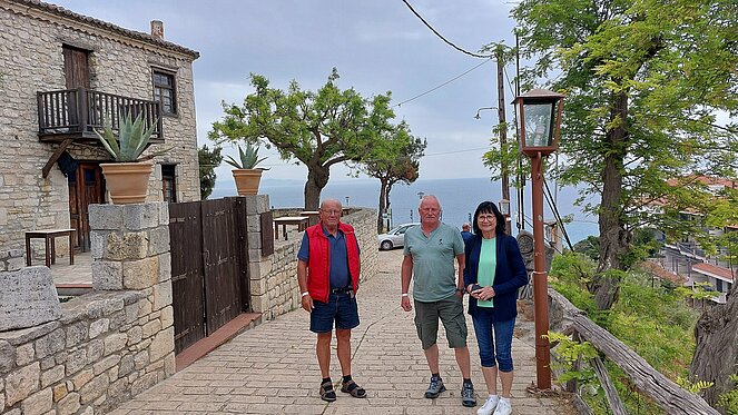 Fünf Mitglieder unserer Ortsgruppe waren auch beim Frühjahrstreffen auf Chalkidike mit dabei. Veranstalter dieser Urlaubswochen ist das Reisebüro "Seniorenreisen", das dem Pensionistenverband gehört. Ein buntes Ausflugsprogramm wurde geboten, Bootsfahrt entlang der Mönchsrepublik Berg Athos, Thessaloniki, Kavala, Besuch in der Weinregion Arnea usw. Schönes Wetter, gutes Essen, schwungvolle griechische Musik, blaues Meer, das alles bescherte uns sieben herrliche Tage in Griechenland. Nachstehend einige Schnappschüsse vom Frühjahrstreffen in Chalkidike.