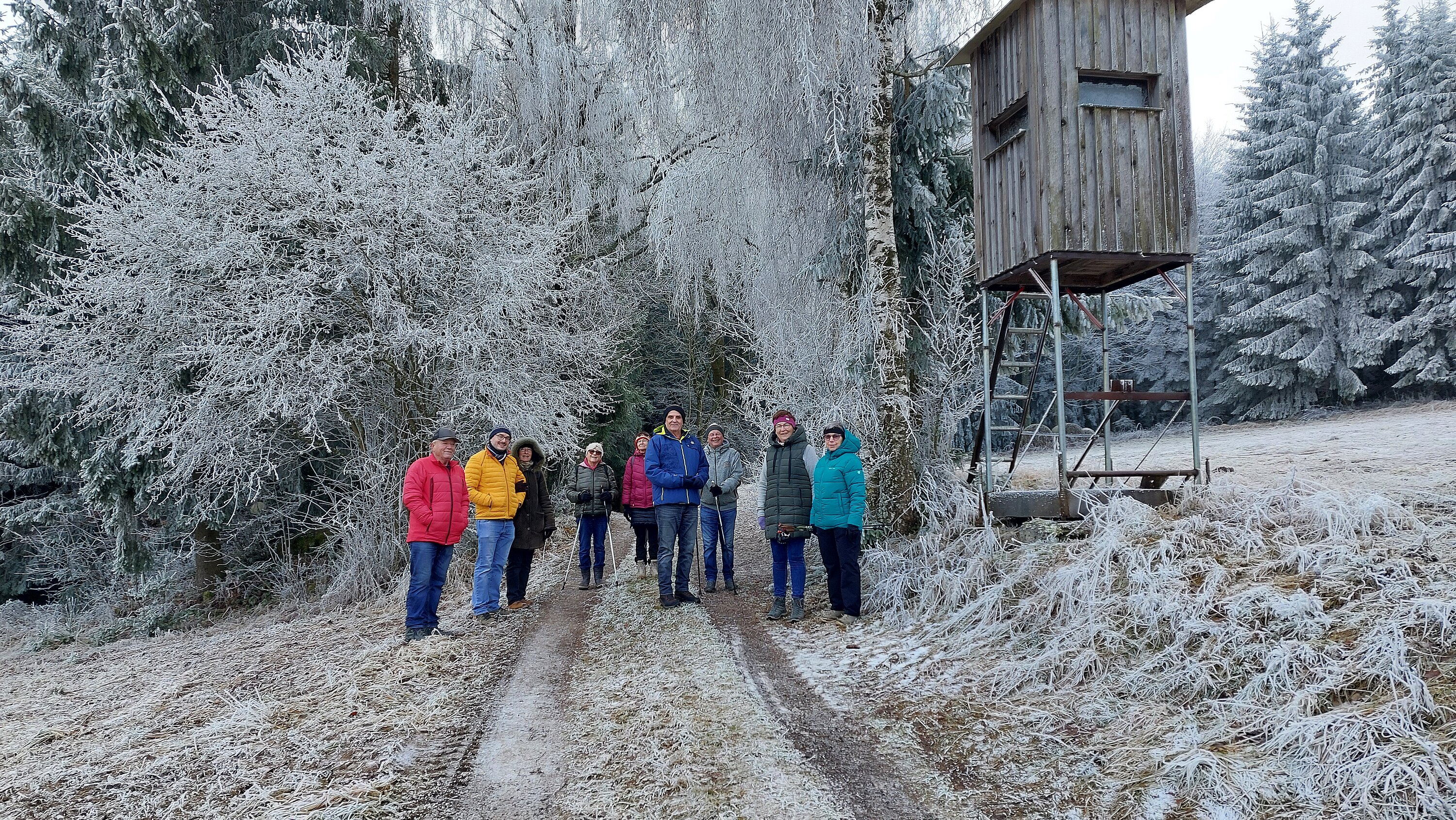Langsam zieht die Kälte ein, Weihnachten und das Jahresende stehen vor der Tür. Doch das hielt uns nicht davon ab: Zehn Wanderbegeisterte trafen sich in Schenkenfelden um gemeinsam die letzte Tour des Jahres 2025 zu unternehmen. Renate hat eine wunderschöne Route ausgewählt, die im Ort Schenkenfelden startete und uns anschließend auf Wiesen-, Feld- und Waldwegen die winterliche Landschaft erleben ließ. Auf den Anhöhen wehte ein frischer Wind, die Natur präsentierte sich in ihrem ruhigen, winterlichen Kleid.