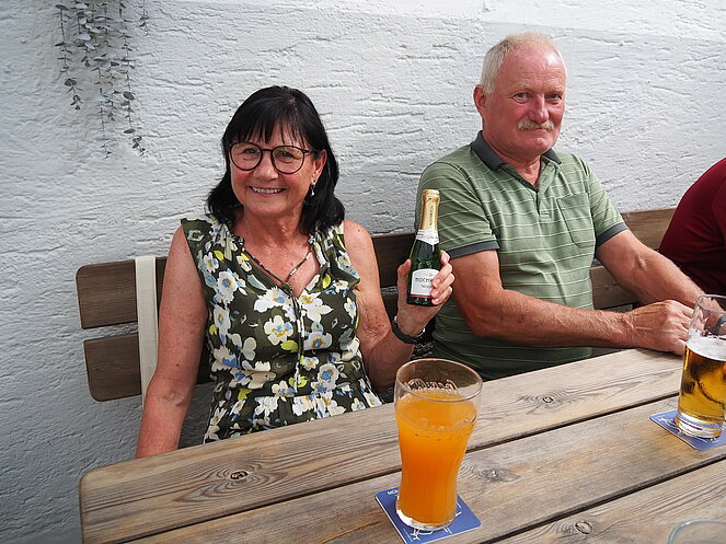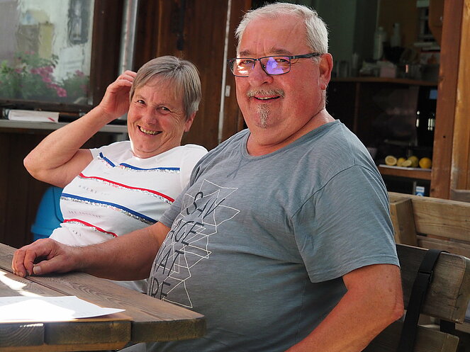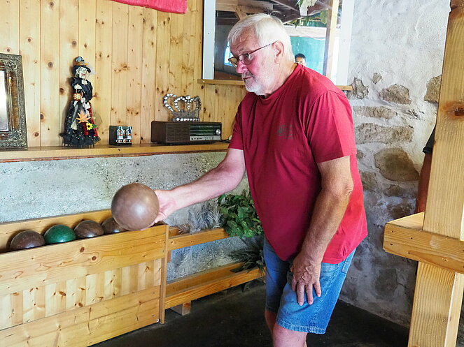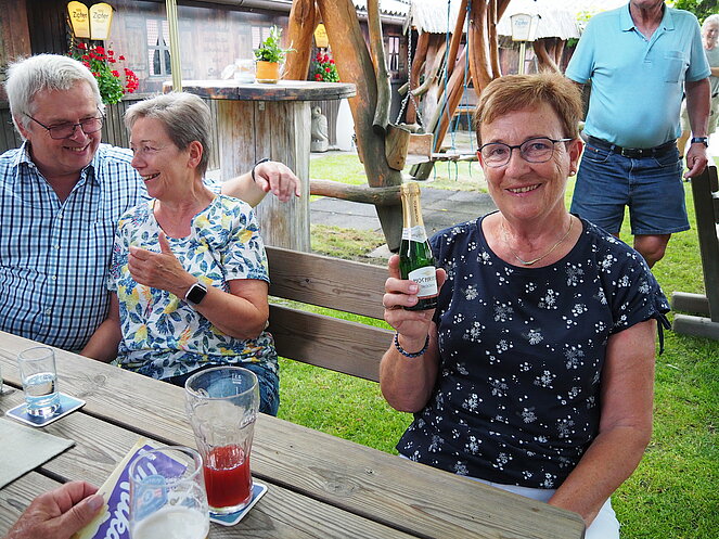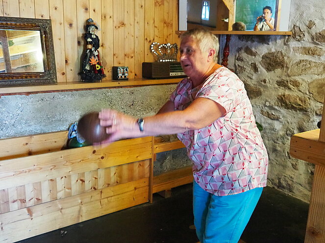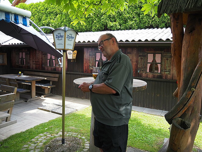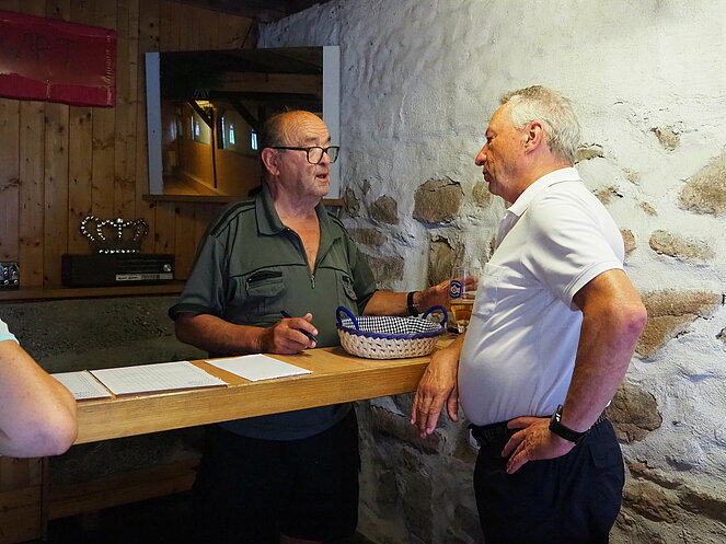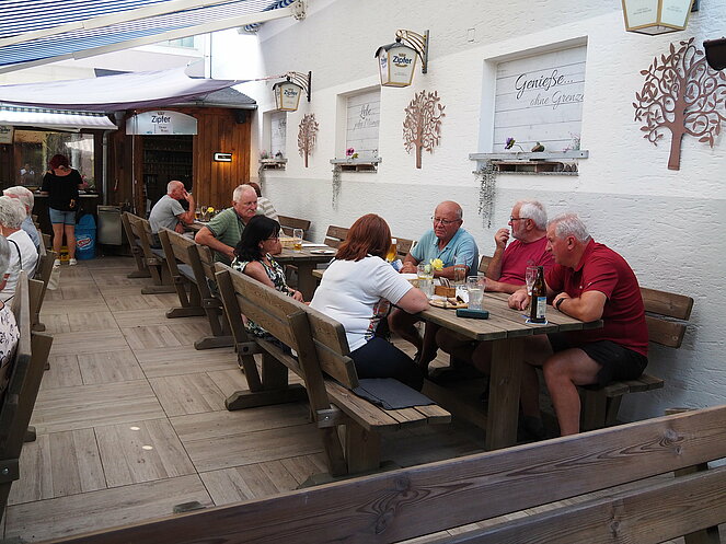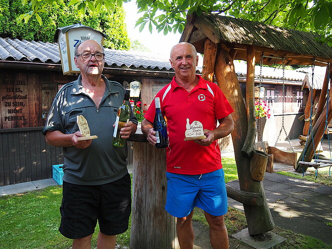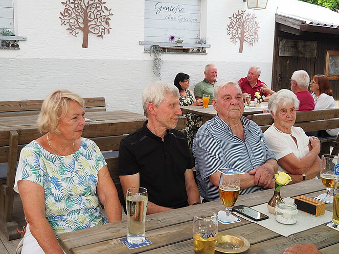 Otto Purner und Franz Vogl nahmen auch gleich das Ruder in die Hand. Fleißig wurde auf der Ladenbahn gekegelt, während im Gastgarten munter getrascht wurde und die Leckermäuler unter uns kühlten sich mit „Heißer Liebe“ ab.