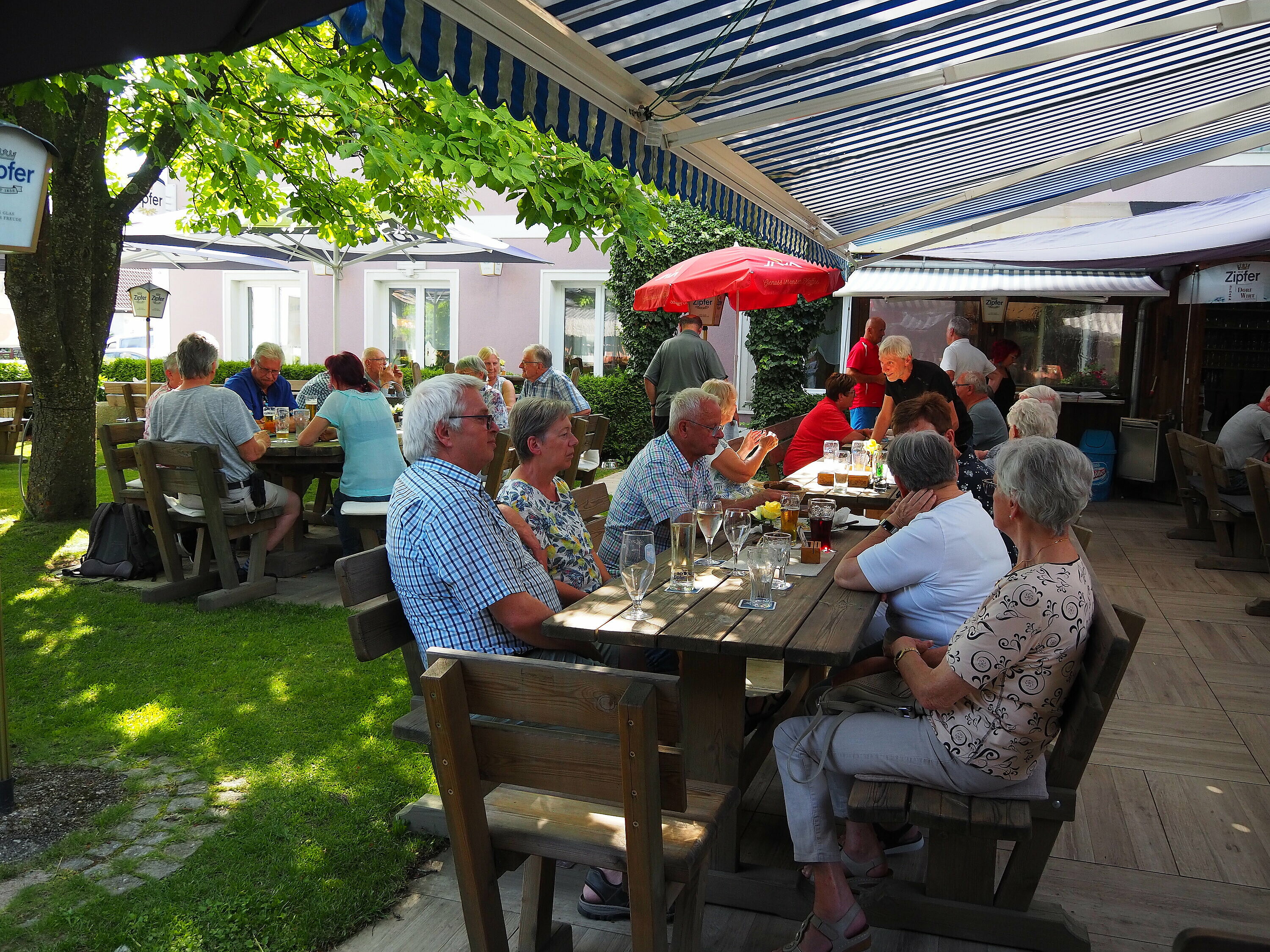 Heuer war uns beim Ladenbahnkegeln ein heißer Sommertag beschieden, doch Dank des mächtigen schattenspendenden Baumes im Gastgarten war das doch gut erträglich für uns alle.