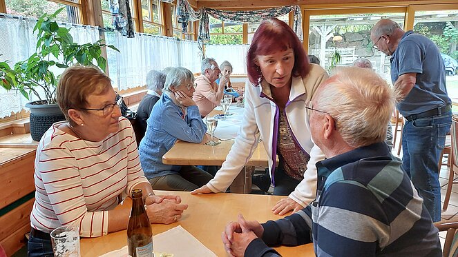 Ernährung ist natürlich ein zentrales Thema für Gesundheit und Wohlbefinden und darüber sind wir uns auch alle einig. Besonders uns als der älteren Generation kann es nicht schaden, sich mit diesem Thema wieder einmal auseinander zu setzen. „Iss den Regenbogen: je bunter, desto besser“ – max. 300 g Fleisch in einer Woche essen und täglich 1,5 l kalorienarme Flüssigkeit zu sich nehmen. Um ehrlich zu sein, der Großteil von uns übertrifft den Fleischkonsum natürlich bei weitem. Oder dem Vitamin D als Vorbeugung gegen Osteoporose Aufmerksamkeit schenken, die Wirkung der Ballaststoffe, wie chronischen Erkrankungen vorbeugen? usw…..Eine Stunde war schnell vorbei und immer wieder kamen auch Fragen dazu auf.