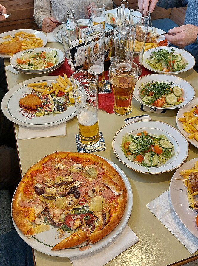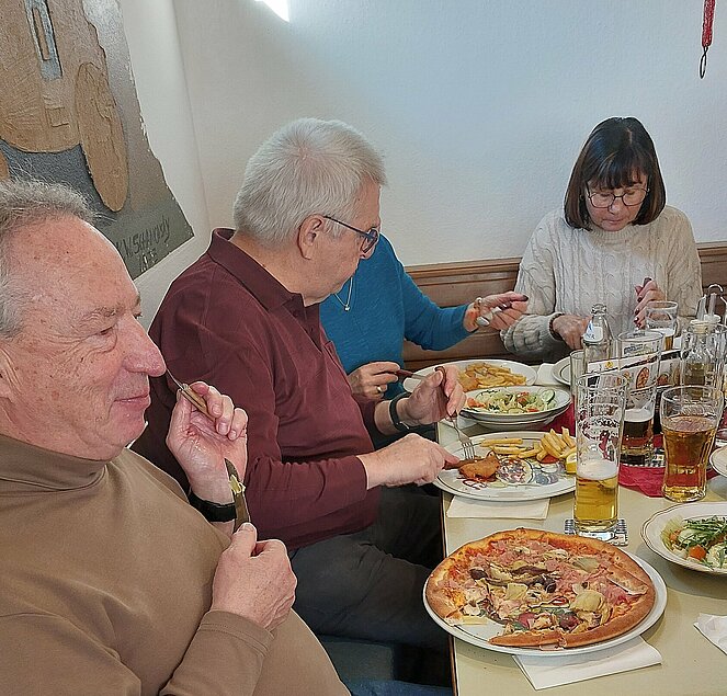 Unser erstes Monatstreffen im Jahr 2026 hielten wir in der Pizzeria in Reichenau ab. Das Angebot wurde auch von über dreißig Mitgliedern angenommen. Der Wirt hatte mit uns alle Hände voll zu tun und freute sich über die vielen Gäste zum Mittagessen in seiner Gaststube. Pizzas, Hühnergyros, Pizzastangerl, Grillkotelett – quer durch die Speisekarte wählte unsere Gruppe die Speisen aus und jedem schmeckte es. Nach dem Essen gab es die Geburtstagsgratulationen und als kleines Geschenk überreichte Christa – zur Jahreszeit passend – Hustenzuckerl. Dann folgten noch Informationen zu den weiteren Veranstaltungen und zu den Monatstreffen im 1. Halbjahr.