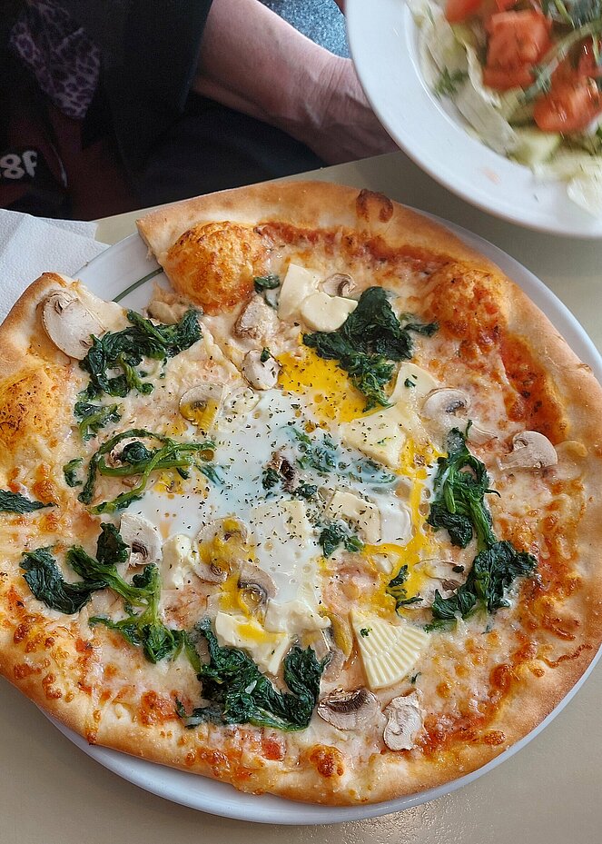 Ziemlich genau zur Mittagssperre um 14 Uhr verließen wir dann gestärkt die Pizzeria, es waren zwei gemütliche gemeinsame Stunden.