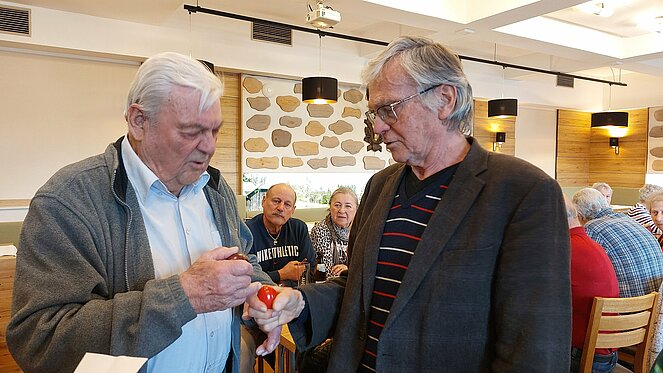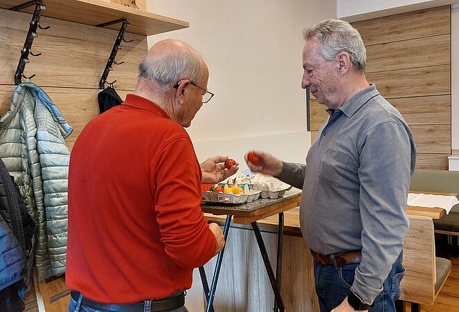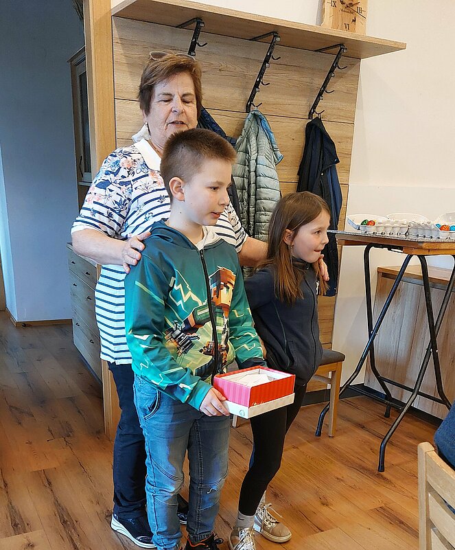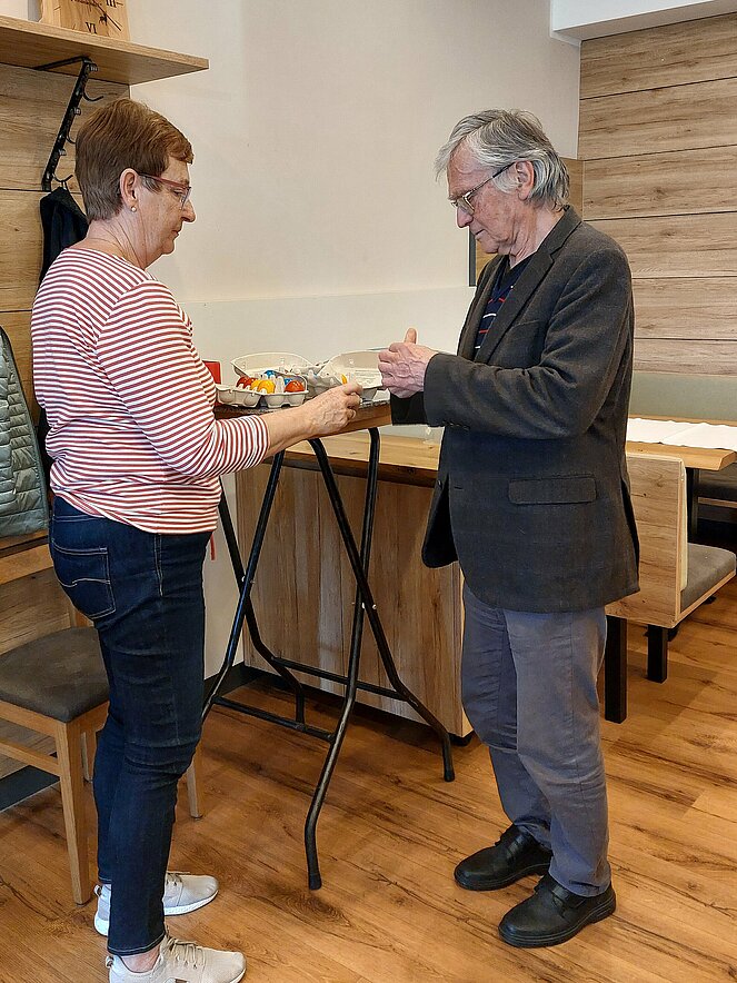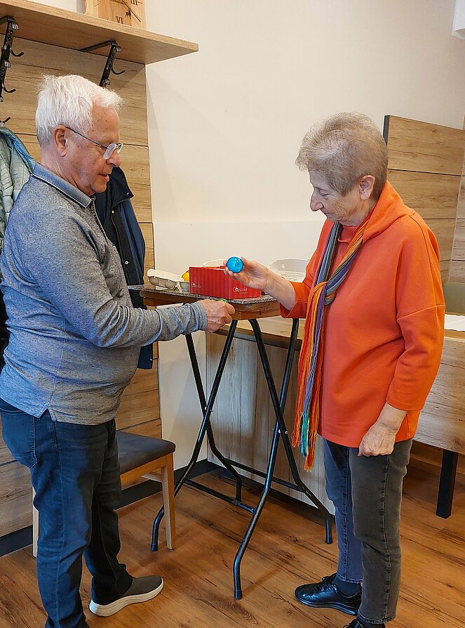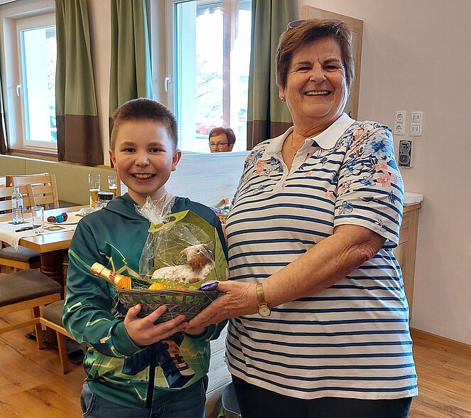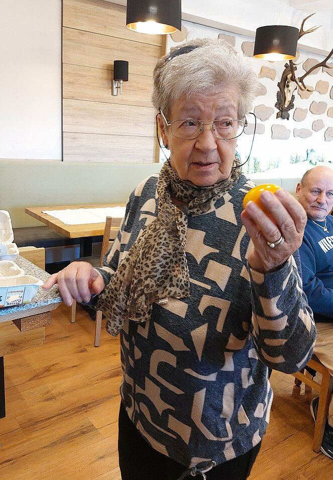 Zuguterletzt gewann das Eierpecken unser Glücksengerl Manuel. Und mit einer netten Geste brachte er seiner Gegnerin Ingrid das Flascherl Sekt, das im Nesterl mit dabei war. Den zweiten und dritten Platz „erpeckten“ sich mit viel Gefühl Inge Mayrhofer vor Christa Prandstätter.