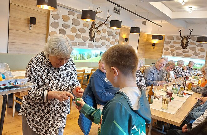 Anschließend hatten wir als Programm kurz vor Ostern unser „Eierpecken“. Die Plätze 1, 2 und 3 wurden mit einem Osternesterl belohnt. Als Glückengerl für den kleinen Wettbewerb assistierten Clara und Manuel, während Oma Gitti für die Fotos verantwortlich war. Lustig war es und die kaputten Eier wurden natürlich auch gleich dort konsumiert. Danke an die Wirtin Katharina für die „Brotspende“ dazu.