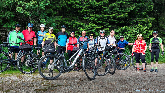 Um 13 Uhr starteten dann 15 Pensionisten nach dem Essen zur 3. Radausfahrt in der heurigen Saison. Und der Wettergott meinte es doch gnädig mit uns. Trotz schlechter Vorhersagen hielt das schöne Wetter bis in den späteren Nachmittag an. Wir fuhren über's Poscher hinunter zur Brücklmühle und bogen dann auf den Waldweg Richtung Gerberstorf ab. Über Veitsdorf ging es hinauf nach Weitrag, weiter nach Kulm, vorbei am Gasthaus Raml nach Willerstorf, Kitzelsbach, Stratreith, Pelmberg und über Hellmonsödt traten wir dann alle individuell die Heimfahrt an. Die Strecke war ca. 30 km lang.