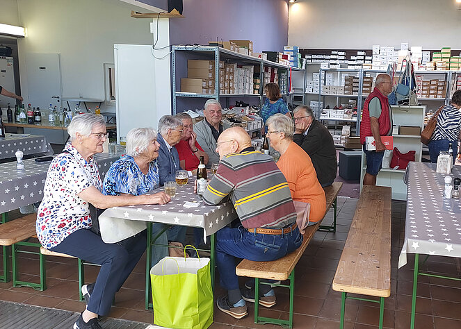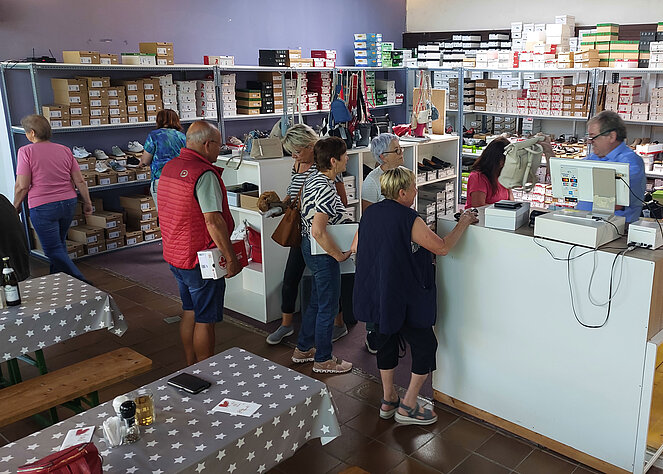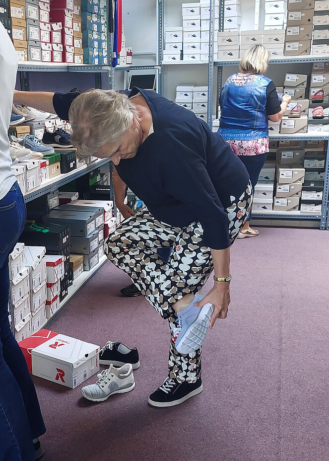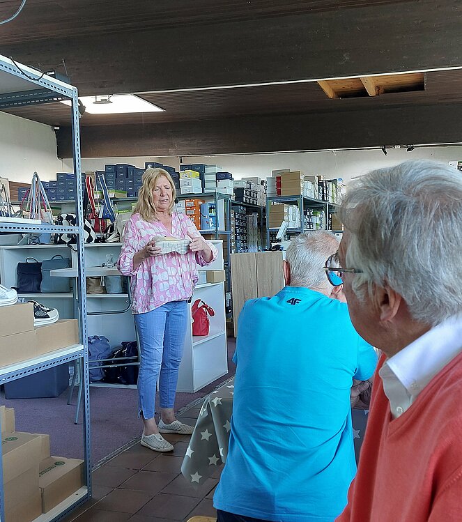 Bevor die Fa. Megaflex in zwei Jahren ihren Betrieb komplett schließt, mussten wir noch von deren tollem Ausflugsangebot Gebrauch machen. Frau Huemer, die bereits pensionierte Chefin des Betriebes, empfing uns auf dem Parkplatz der Firma. Der Vortrag von Herrn Huemer war höchst interessant – gab es vor 35 Jahren über 2000 Schuhfabriken in Österreich so gibt es heute nur mehr zwei. Ausgewandert wurde mit den Betrieben nach Rumänien und in die Slowakei. Aber von diesen Ländern dürften bald die Fabriken weiterziehen Richtung Afrika – Tunesien und Marokko produzieren bereits Schuhe. Die Autoindustrie macht sich in den derzeitigen Produktionsländern breit und da können die Löhne der Schuhindustrie nicht mithalten. Bei Megalflex wurden wir mit einem Frühstücksbuffet, Getränken, einer Rindsrollade mit Butterspätzle zum Mittagessen, dazu ein Schnapserl, verwöhnt. Aber dazwischen wurde von uns auch eifrig geshoppt und fast jeder fand sein Lieblingsstück - Schuhe, Handtasche oder Geldtasche in bequemer und guter Qualität.